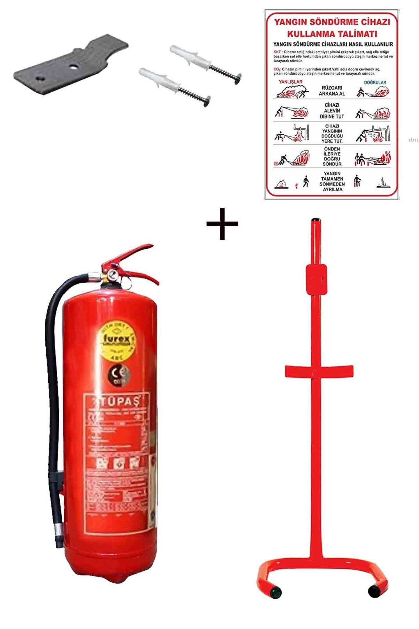 6kg Yangın Tüpü,yangın Tüpü Kullanım Talimatı, Askı Aparatı, Dübel Vida Ve C Tipi Sehpa 5li Se