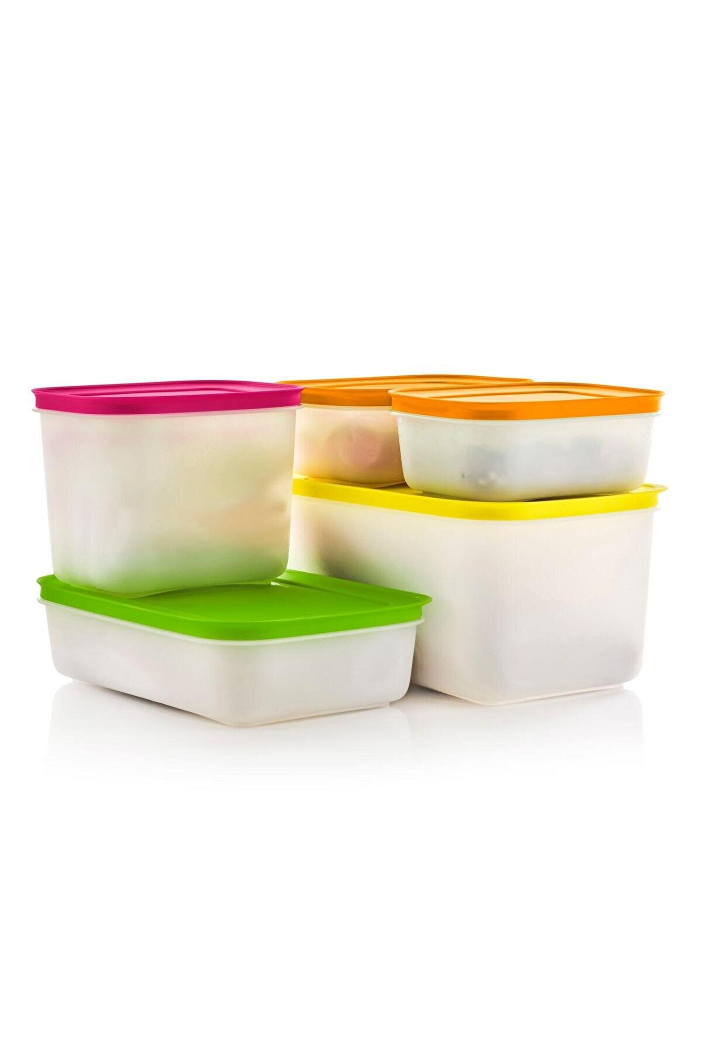 Tupperware'e özel olarak tasarlanmış Alaska Dondurucu ve Saklama kaplarımız, dondurucunuzda yerden tasarruf etmenize yardımcı olmak için kare/yuvarlak bir şekle ve donmuş ürünleri kolaylıkla kalıptan çıkarmak için daha esnek bir malzemeye sahiptir.; Tüm Alaska kaplarımız, çorbalar, yahniler, soslar ve çok daha fazlasından kaynaklanan lekelenmeyi önlemeye yardımcı olmak için yenilikçi leke koruyucu özelliğine sahiptir.; Kullanılmadığı zaman, saklama çekmecelerinizde yer kazanmak için Alaska dondurucu saklama kaplarını iç içe yerleştirerek dondurucu raflarınızı düzenli tutabilirsiniz.; - Ayaklarda ve contanın üst kısmındaki iç kenarda bulunan istifleme özellikleri sayesinde dondurucunuzda yerden tasarruf edin.; - Kapların modülerliği sayesinde dondurucunuzu düzgün bir şekilde düzenleyin! - Havalı oymalı kar tanesi tasarımı, yalnızca dondurucuya koymanın güvenli olduğunu bilmenizi sağlamakla kalmaz, aynı zamanda yoğuşma ile ıslandığında kavramayı da kolaylaştırır.; - Conta, içindekileri kuru havadan korur ve diğer yiyeceklerin dökülmesini ve kokularının içeri sızmasını önler, böylece yiyecekleriniz mümkün olduğunca taze kalır.; - Kabın altındaki eğri, soğuk havanın daha eşit bir şekilde dolaşmasına izin verdiği için yiyecekler hızla donar.; - Esnek malzeme, yuvarlatılmış köşeler ve parlak iç kısım sayesinde donmuş ürünlerinizi kolaylıkla çıkarın.; - Kabın içindeki maksimum doldurma çizgisi, yemeğinizin donma işlemi sırasında genişlemesi için yeterli alana sahip olmasını sağlar.; - Color Control kaplama, domates sosu, havuç, zerdeçal vb.; malzemelerin neden olduğu lekelenmeyi önlemeye yardımcı olur.450 ml - 15,2x11,4x6,2 cm - 2 adet.; 1 l - 22,6x15,7x6,2 cm - 1 adet.; 1,1 l - 15,2x11,4x11,8 cm - 1 adet.; 2,5 l - 22,6x15,7x11,8 cm - 1 adet.