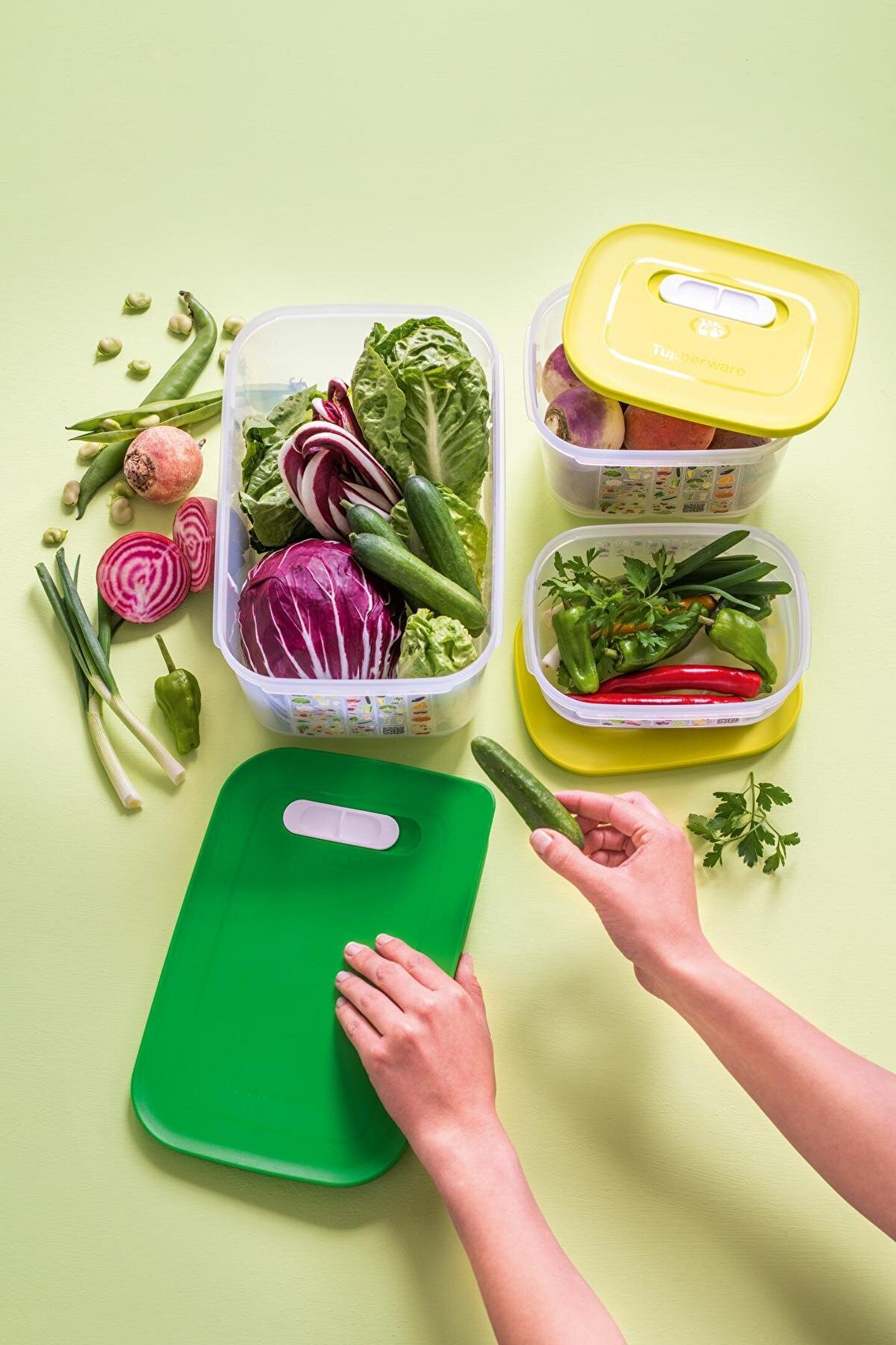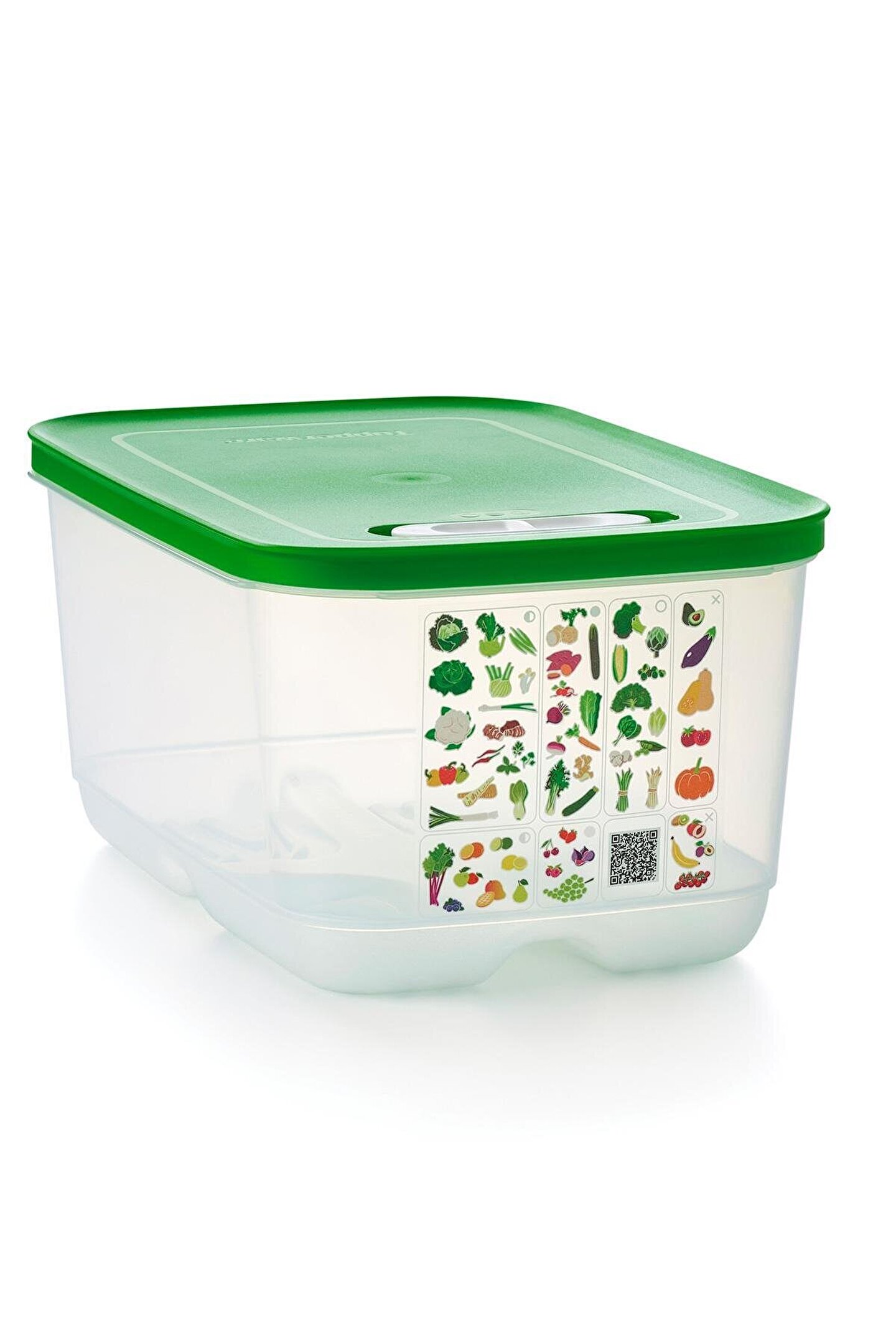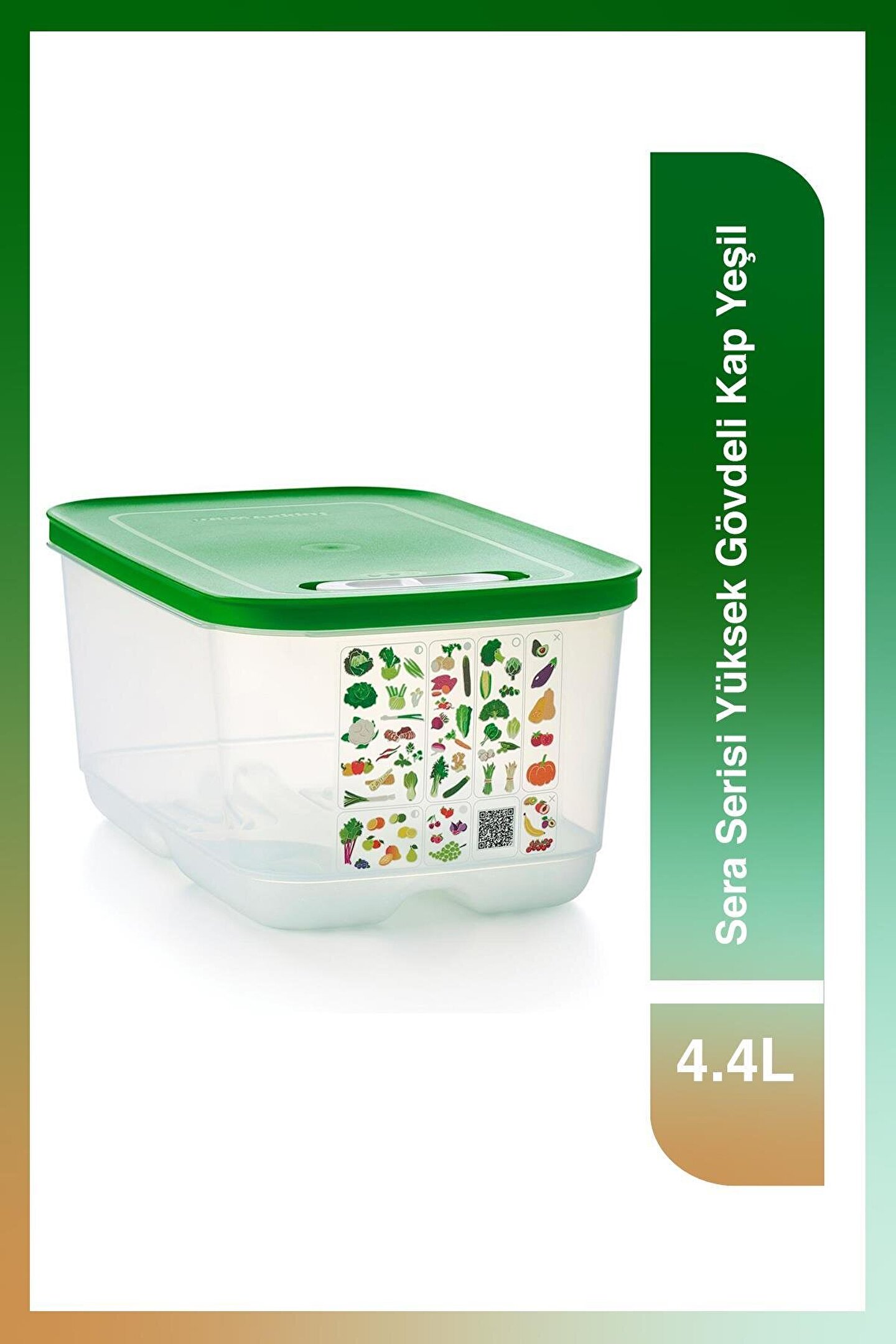 Ürünlerinizi daha uzun süre taze tutun! Meyve ve sebzelerin depolanması, bir dizi akıllı kap geliştirmek için Florida Üniversitesi ve Tupperware tarafından en iyi gıda bilimcileri tarafından kapsamlı bir şekilde araştırıldı.; Tupperware AKO (Atmosfer Kontrollü Ortam) sistemi, meyve ve sebzeleri daha uzun süre taze tutmak için en uygun ortamı yaratır.; Sera Serisi Kaplar, içeri giren oksijen akışını ve dışarı çıkan karbondioksiti dengeleyerek konteyner içindeki atmosferi düzenlemeye yardımcı olan özel bir üç yollu havalandırma sistemine sahiptir.; Kapağın üstünde yer alan kaydırıcı mekanizma 3 farklı pozisyonda kullanılabilir: 1- Yarım Açık: Kaydırıcı mekanizma, piktogramdaki yarım daire ile hizalandığında, contadaki küçük açıklık hafif havalandırma için açılır.; 2- Kapalı: Kaydırıcı mekanizma, piktogramın ortasındaki tamamen oyulmuş daire ile hizalandığında, contadaki her iki açıklık da kapatılır.; 3- Tam Açık: Kaydırıcı mekanizma, piktogram üzerindeki içi boş, parlak daire ile hizalandığında, contadaki büyük açıklık tam havalandırma için açılır.; Köşedeki tırnak sayesinde kapağın açılması kolaydır.; Tabanın altındaki yerleşik ızgara, içindekileri nemden uzak tutar ve yiyeceklerin etrafında hava sirkülasyonu sağlar.; Kullanılmadığı zaman, farklı boyutlar arasında bile kompakt depolama için yuvalanabilirler.; 4.4 L kapasiteli Sera Serisi Yüksek Gövdeli Kap, aşağıdaki gibi meyve ve sebzeleri saklayabilir: Elma, enginar, pancar, dolmalık biber, brokoli, havuç, karnabahar, kereviz, turunçgiller, hindiba, rezene, marul, kırmızı biber, armut, bezelye, biber, ıspanak, tatlı patates, şalgam, kabak…28.4 x 18.8 x 13.5