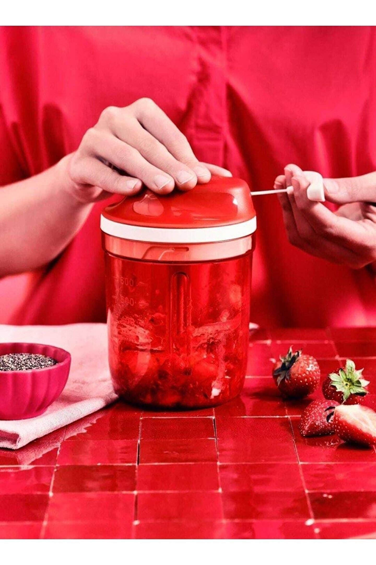 Tupperware Supersonic Manuel Rondo 750 Ml Geri Bildirim Ver Supersonic manuel rondo'nun en yeni versiyonu ile tanışın. ; Deneyimli şeflerden 5 kat daha hızlı doğrayın! • ; supersonic manuel rondo 750 ml daha önce gördüğünüz hiçbir mutfak robotuna benzemiyor. ; • bu manuel mutfak robotu ile elektriğe gerek yok! • sadece kolunu çekerek bir profesyonel gibi doğramanıza, karıştırmanıza ve harmanlamanıza böylece doğrama süresini yarıya indirmeye yardımcı olacaktır. • farklı uçlar, bıçak ve kürek ile sınırsız çeşitlilikte lezzetli yemekleri hızlıca oluşturabilirsiniz! ; Supersonic manuel rondo ile hazırlayabilecekleriniz: • kahvaltı: Smoothieler, omletler, enerji topları… • tatlı: Milkshake, meyveli lolipoplar… • veya tüm tarifleriniz için çeşitli malzemeleri doğrayın: Otlar, sarımsak, arpacık soğanı, soğan, biber, zeytin, yer fıstığı, kaju fıstığı, badem ve diğer fındık, havuç ve diğer sebze veya meyveler… ;