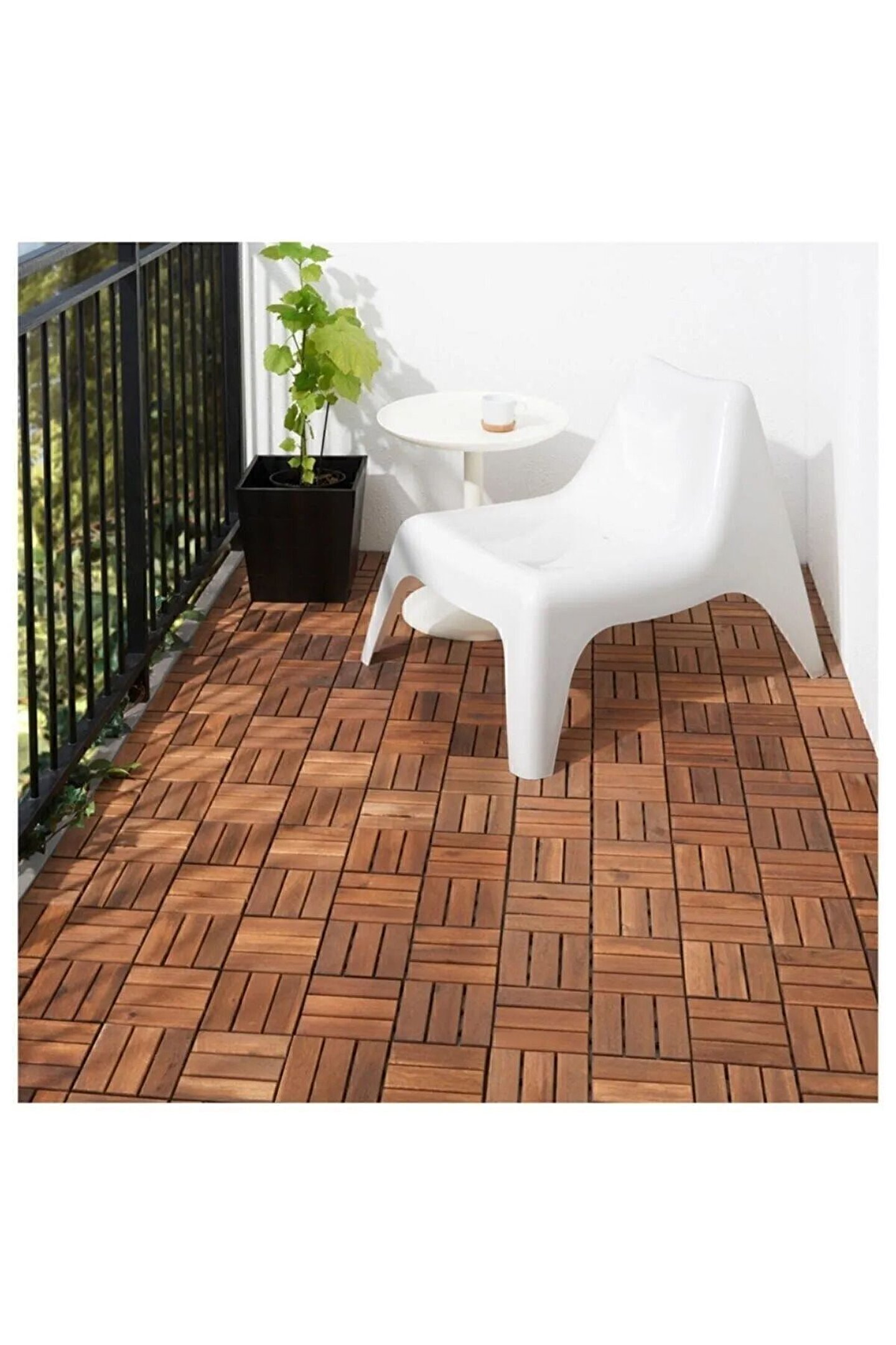 Yer döşemesi, teras ve balkonunuzu yenilemenizi kolaylaştırır.; İhtiyaca göre kesilebilir, köşelere veya bir direğin çevresine uygulanabilir.; Bu yer döşemesi masif akasya ağacından yapılmıştır ve polipropilen plastikten üretilmiştir.; Ölçüleri şu şekildedir: Uzunluk: 30 cm ; Genişlik: 30 cm ; Kalınlık: 2 cm ; Alan: 0.09 m² ; Her bir adet 0.09 m²'yi kaplar.; Yer döşemesini düzenli olarak cilalarsanız, aşınma ve yıpranmaya karşı koruma sağlayabilirsiniz.; Bakım talimatları şunlardır: Yumuşak sabunlu solüsyonla temizleyin ve kuru, temiz bir bezle kurulayın.; Renk değişiklikleri, küçük çatlaklar ve kuru bir yüzey, yeniden cilalamanın zamanının geldiğini gösterebilir.; Bu zemin döşemesi, sert ve düz yüzeyler, örneğin beton, taş ve ahşap gibi zeminler için uygundur.; Ancak, bu ahşap döşemeyi yerleştirmeniz gereken zeminlerde, ahşabın tanen asit içerdiğini unutmayın.; Bu nedenle, ahşap döşemeyi uzun süreli kullanımdan sonra sızıntı yapabileceği ve zemin rengini değiştirebileceği zeminler üzerine koymamaya dikkat edin.; "