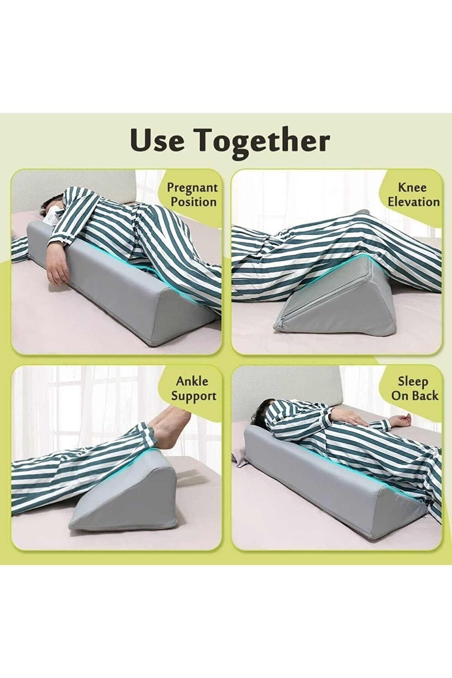 ?Tıbbi Köpük Takoz?Benzersiz tasarımı, birlikte ve ayrı ayrı kullanılmasına izin verir. Ortası oluklu olarak tasarlanmış büyük yastık daha nefes alabilir ve yatak yaralarını ve deri döküntülerini etkili bir şekilde önler. Küçük kama başı, elleri, dizleri ve bacakları destekleyebilir. ?Su geçirmez PU Deri? Leke tutmayan dış malzeme, temiz bir havluyla kolayca temizlemenizi sağlar. İçerideki süngeri lekeleyen ter lekeleri veya içecekler hakkında endişelenmeyi bırakın, yastığınızı temiz ve hijyenik tutmaya yardımcı olun ve hemşirelik stresini azaltın. ?30 Derece Eğimli?Büyük R şeklindeki kama yastık, vücudu kaldırmak için mükemmel bir eğim eğimi ile tasarlanmıştır. Basınç ülserlerini, yatak yaralarını etkili bir şekilde önleyin, ameliyat sonrası ağrıyı hafifletin ve yaranın hızla iyileşmesine yardımcı olun. Konumlandırma Yatağı Takozu?Toplam boyut 34 x 12 x 7 inç, yüksek yoğunluklu köpüğe sahip iç kısım doğru sıkılığı ve uygun desteği sağlar, vücut konumlandırma, yatak yarası döndürme, bacak yükseltme, yan yatma ve hatta battaniye kaldırma için harikadır.