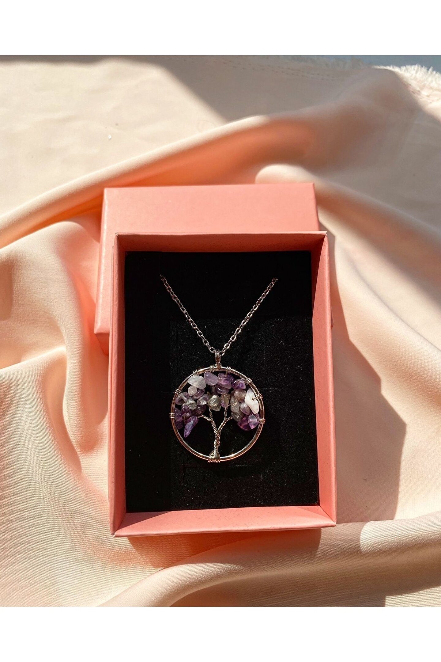 Doğal taş kullanımı sayesinde her kolye benzersiz ve otantik bir görünüm sunar; Ametist taşı, şifa enerjisi ve pozitifliği ile bilinir, bu da onu gençlerin enerjisine uygun bir aksesuar haline getirir; Gençlerin tarzını yansıtan bu kolye, günlük kullanım için idealdir ve stilinizi tamamlar;