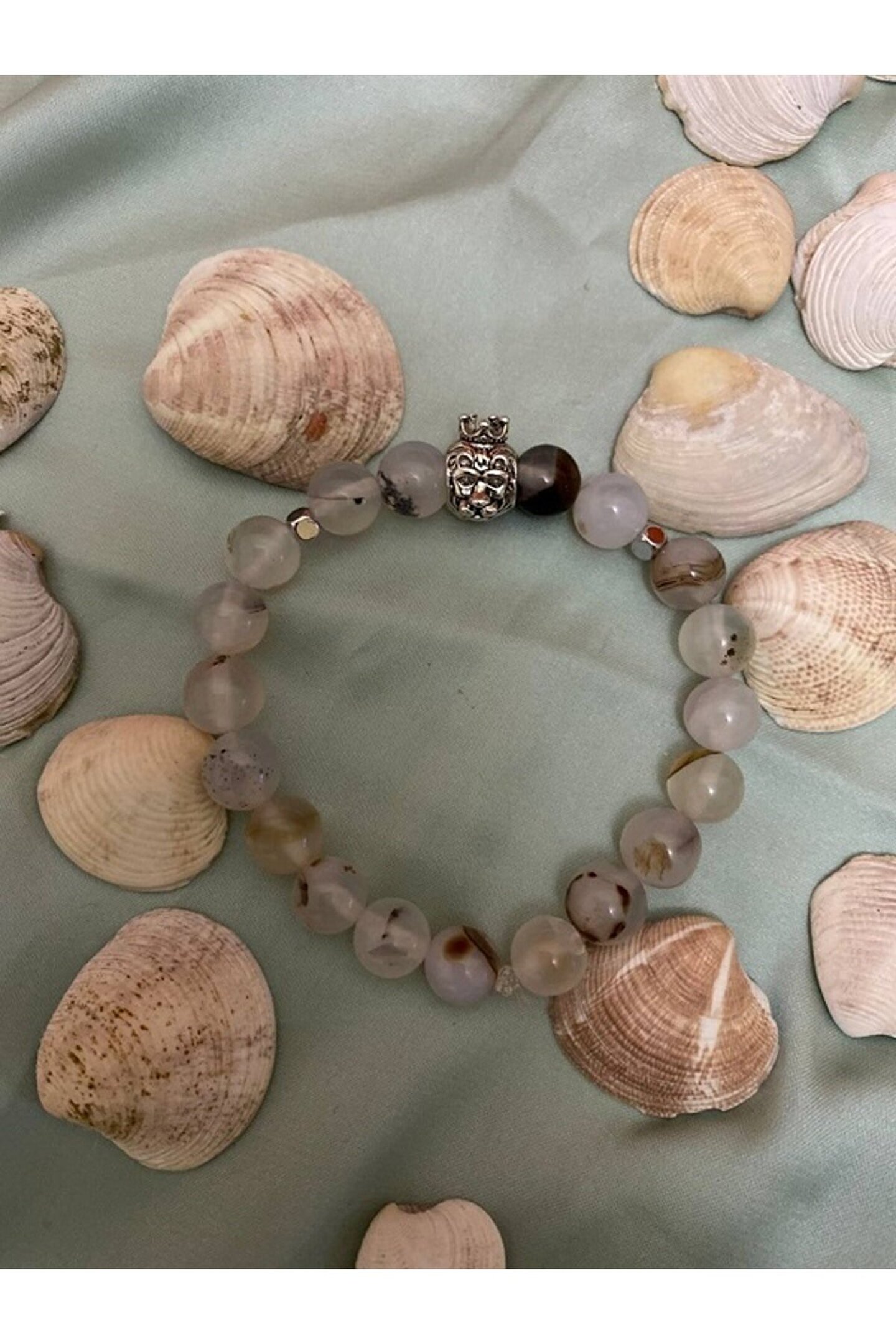 Doğal akik taşı kullanılarak üretilmiş, şıklığı ve zarafeti bir arada sunan bileklik; Her bir bileklik, benzersiz desenleri ve renk tonlarıyla dikkat çeker, kişisel tarzınıza özgün bir dokunuş katar; Doğal taş materyali sayesinde her bileklik, doğanın saf güzelliğini parmaklarınıza taşır ve her kullanımda farklı bir deneyim sunar; El yapımı olmasıyla öne çıkan bu bileklikler, hem kaliteyi hem de estetiği ön planda tutarak tasarlanmıştır;