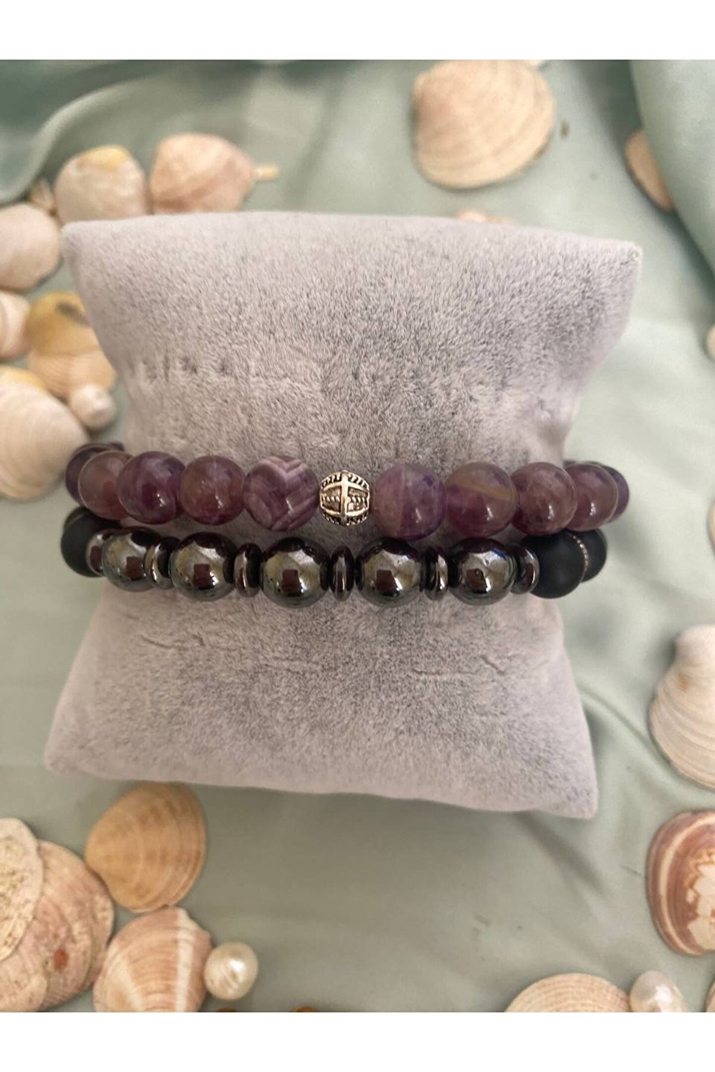 - Ametist, hematit ve oniks taşlarından oluşan bu bileklik, doğanın zarifliğini parmaklarınıza taşır; - Gümüş kaplama ile zenginleştirilmiş bu bileklik, hem şıklığı hem de dayanıklılığı bir arada sunar; - Doğal taşların benzersiz desenleri ve renkleri, her bir bileklikte farklılık gösterir ve kişisel tarzınıza özgün bir dokunuş katar; - Özel günlerinizde veya günlük kullanım için ideal olan bu bileklik, her kıyafetle uyum sağlayacak şekilde tasarlanmıştır; - Ametist, hematit ve oniks taşlarının birleşimi sayesinde hem estetik hem de enerjik bir görünüm elde edilir;