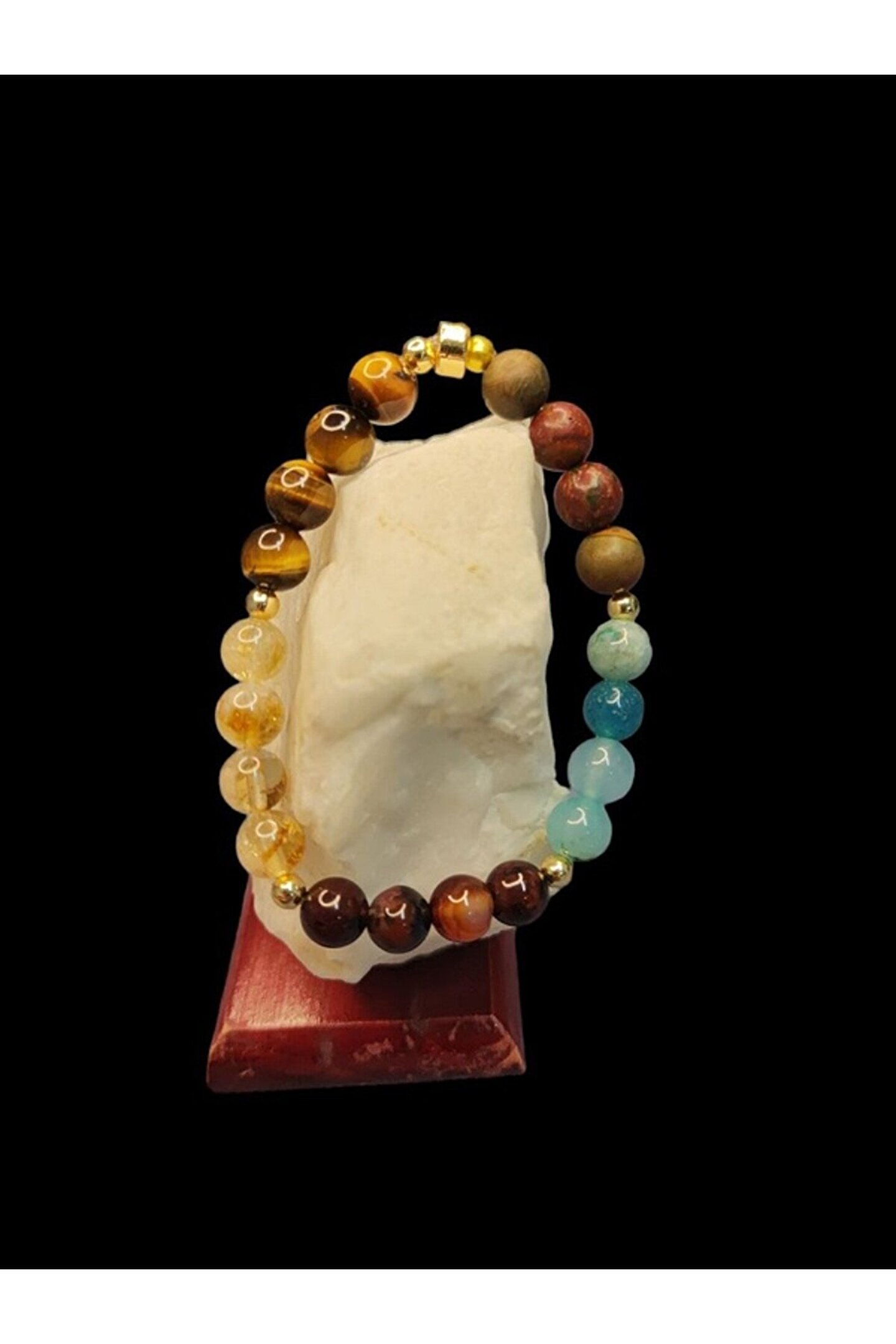 Doğal taş kullanımı sayesinde her bileklik benzersiz ve otantik bir görünüm sunar; Aslan burcu bileklik, aslan burcu özelliklerini yansıtan tasarımıyla dikkat çeker; Doğal taş materyali ile hem şıklığı hem de doğallığı bir arada sunar;