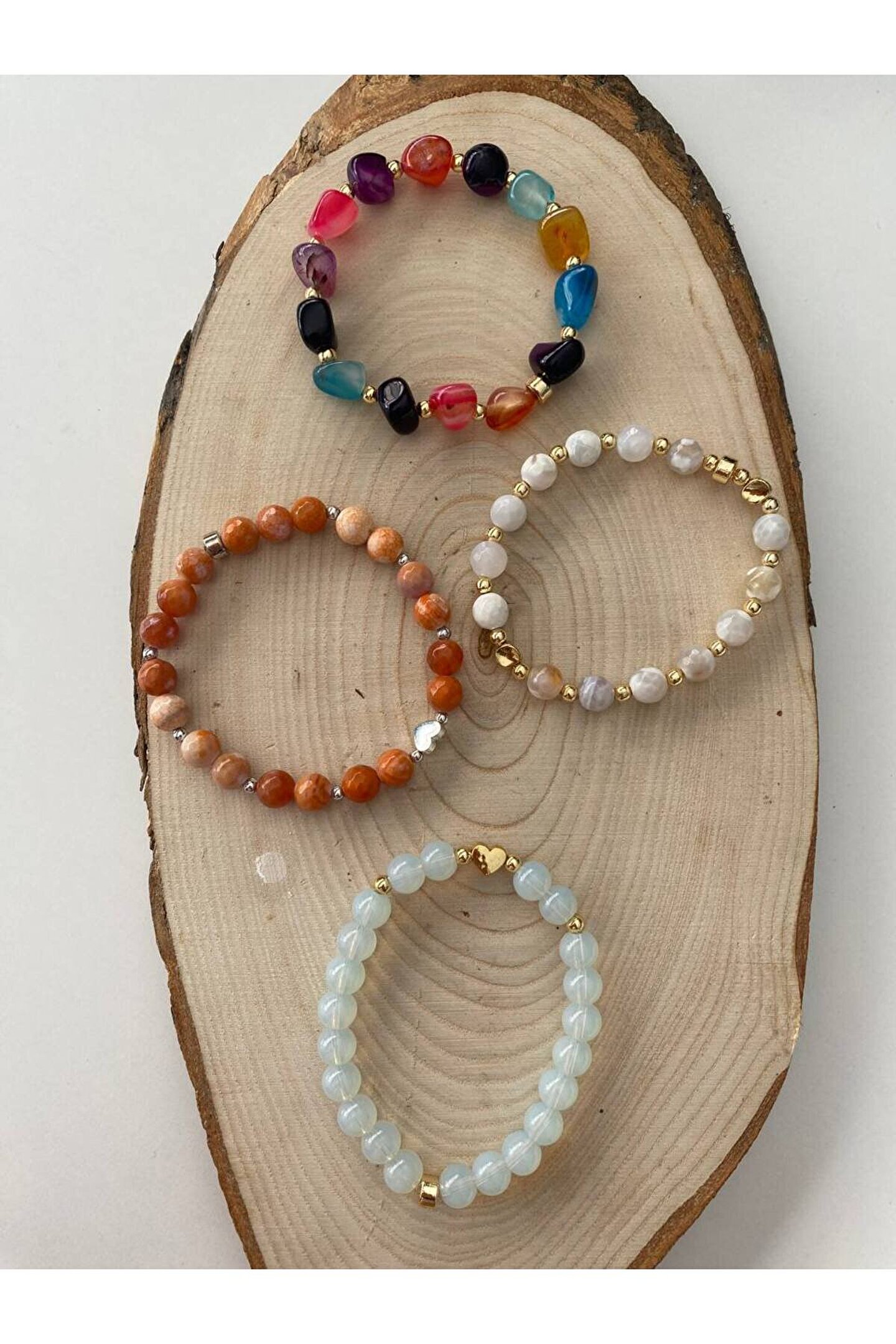 Doğal taş bileklik, şıklığınızı tamamlayacak zarif bir aksesuardır; Ay taşı ve akik taşlarından oluşan bu bileklik, benzersiz ve doğal bir görünüm sunar; Her bir bileklik, el yapımı olarak özenle seçilmiş ve işlenmiştir, bu da her parça için eşsiz bir karakter kazandırır; Akik taşının enerji verici özellikleriyle bilinir; bu bileklik, hem estetik hem de ruhsal faydalar sağlar; Faset kesim akik taşları, ışığı mükemmel bir şekilde yansıtarak bilekliğin parlamasını sağlar ve göz alıcı bir etki yaratır;