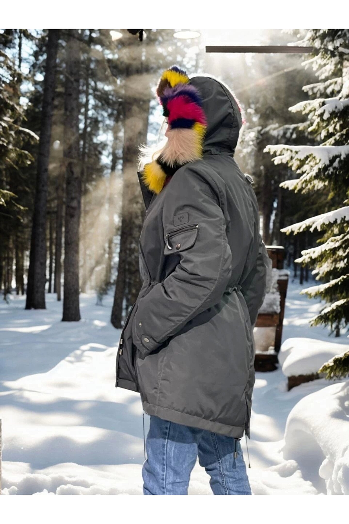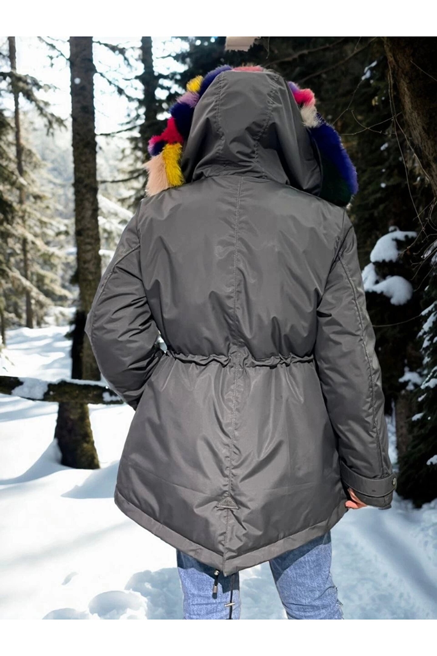 velmorafashion Kadın Su Geçirmez Kapüşonlu Mont - Füme