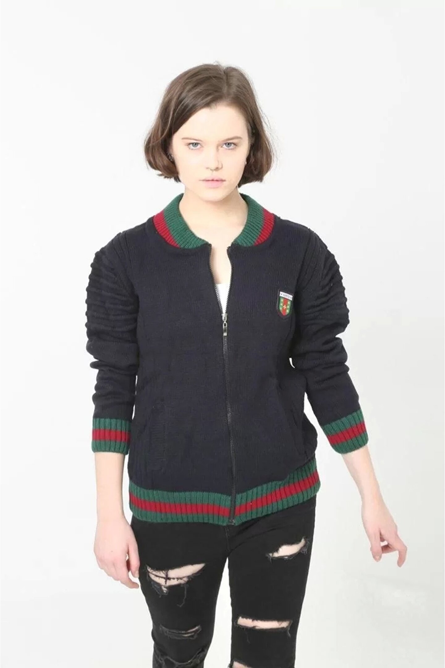 velmorafashion Kadın Tam Fermuarlı Triko Hırka - Lacivert