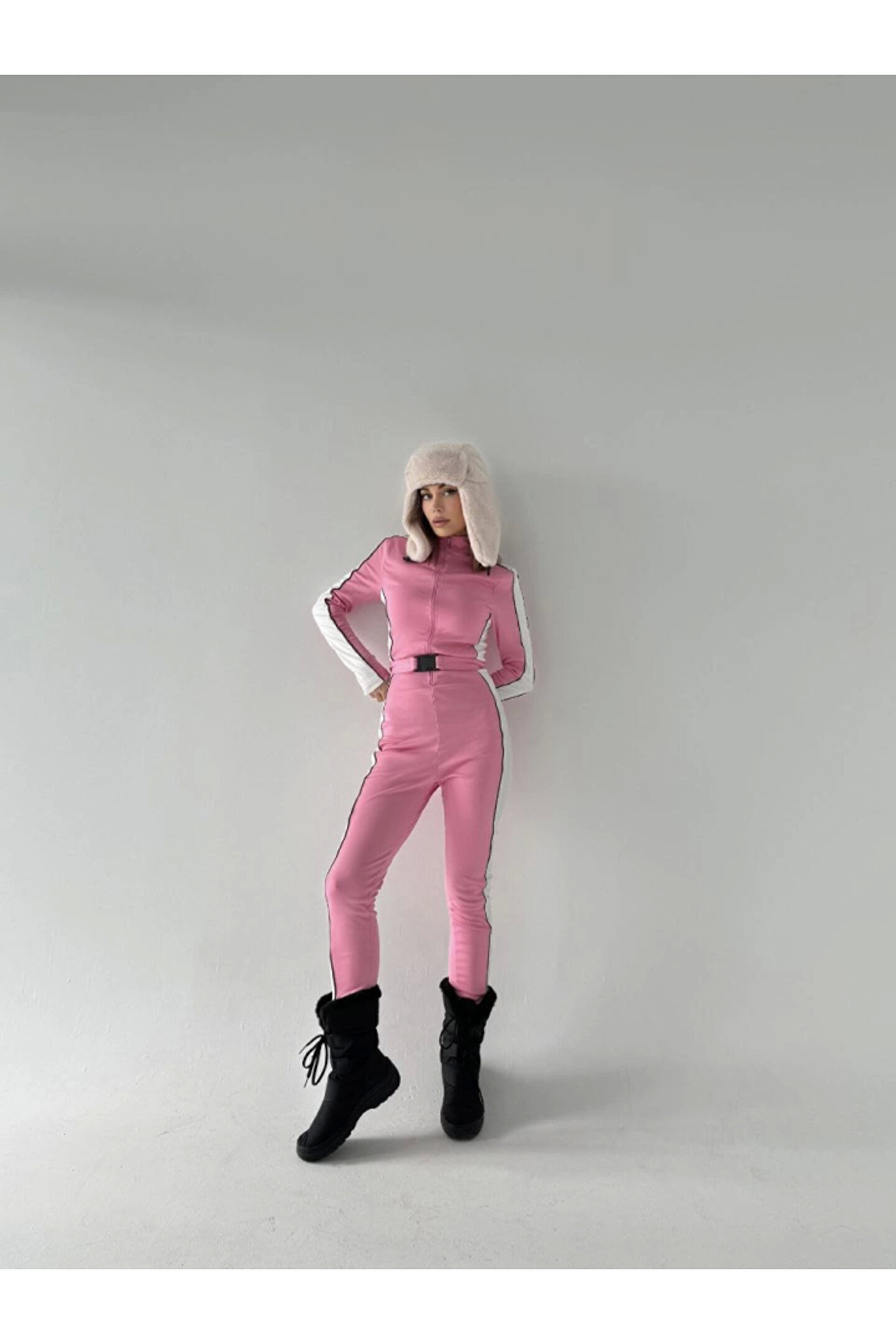 velmorafashion Kemer Detaylı Fermuarlı Tulum - Pembe