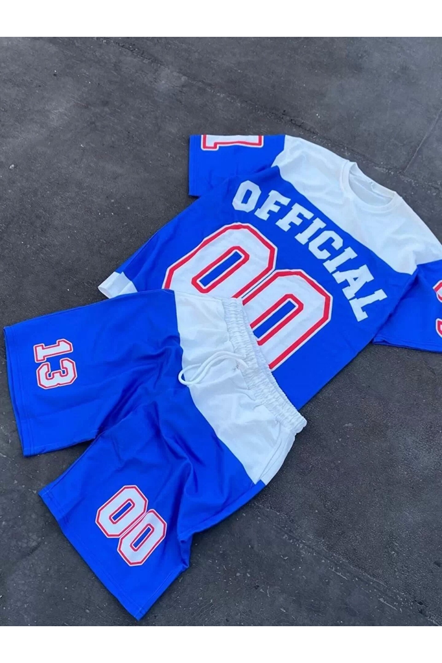 velmorafashion Unisex Çocuk Dijital Baskılı Şortlu Takım - Mavi
