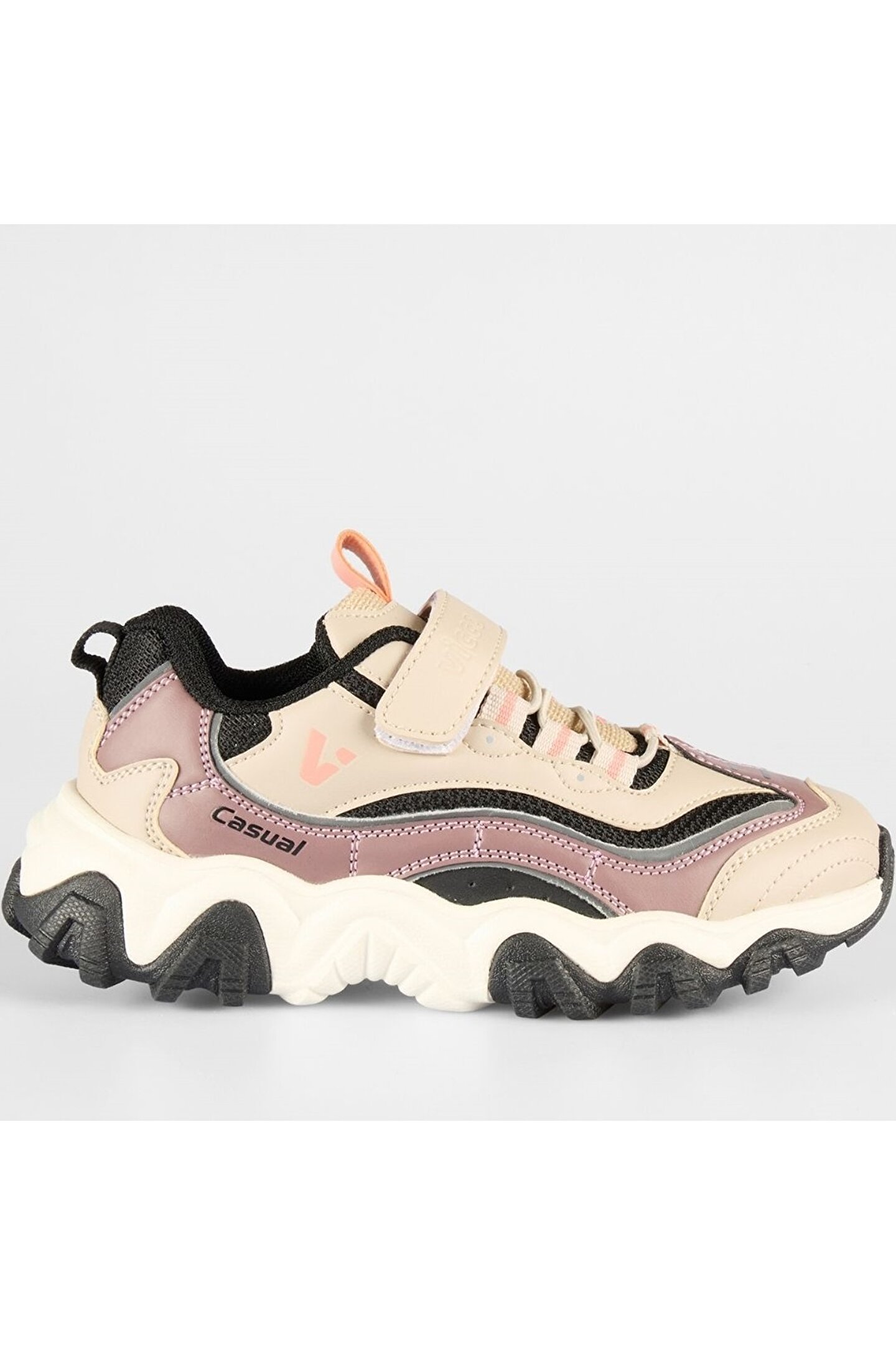 - Bej rengiyle şıklığı ve rahatlığı bir arada sunan çocuk spor ayakkabısı, günlük kullanım için idealdir.; - Kısa topuklu tasarımı ile çocukların konforunu ön planda tutar ve güvenli adımlar atmasını sağlar.; - Yerli üretim olan bu ayakkabı, Türk malı olup yerel işçilikten gurur duyar.; - Canlı renk deseniyle dikkat çeken bu model, çocukların enerjisini yansıtırken stil sahibi görünmelerine yardımcı olur.; - İç tabanında kullanılan tekstil materyali ayağı yumuşakça sararak maksimum konfor sunar.; - Düz topuk yapısı sayesinde çocukların doğal yürüyüşünü destekler ve ayak sağlığını korur.; - Tekstil astarıyla hava alabilir yapıda olup uzun süreli kullanımda bile rahatsızlık hissi yaratmaz.; - Sürdürülebilirlik detayına önem verilmemiştir; ancak dayanıklılığı ve kalitesiyle öne çıkar.; - Type 4 yıkama talimatına uygun şekilde temizlenmesi kolaydır; böylece ebeveynlerin bakım işleri daha az zahmetlidir.; - Web color olarak belirtilen bej tonuyla hem klasik hem de modern tarza hitap eder.; - Poli taban materyali esneklik sağlayarak her adımın rahat geçmesine katkıda bulunur.; - Suni deriden üretilmiş saya materyali dayanıklılık açısından üst düzey performans sergilerken aynı zamanda hafifliğiyle de konfor sunar.; - Bantlı bağlama şekli pratik kullanım imkanı tanırken ayakkabının ayağa tam oturmasını sağlar.
