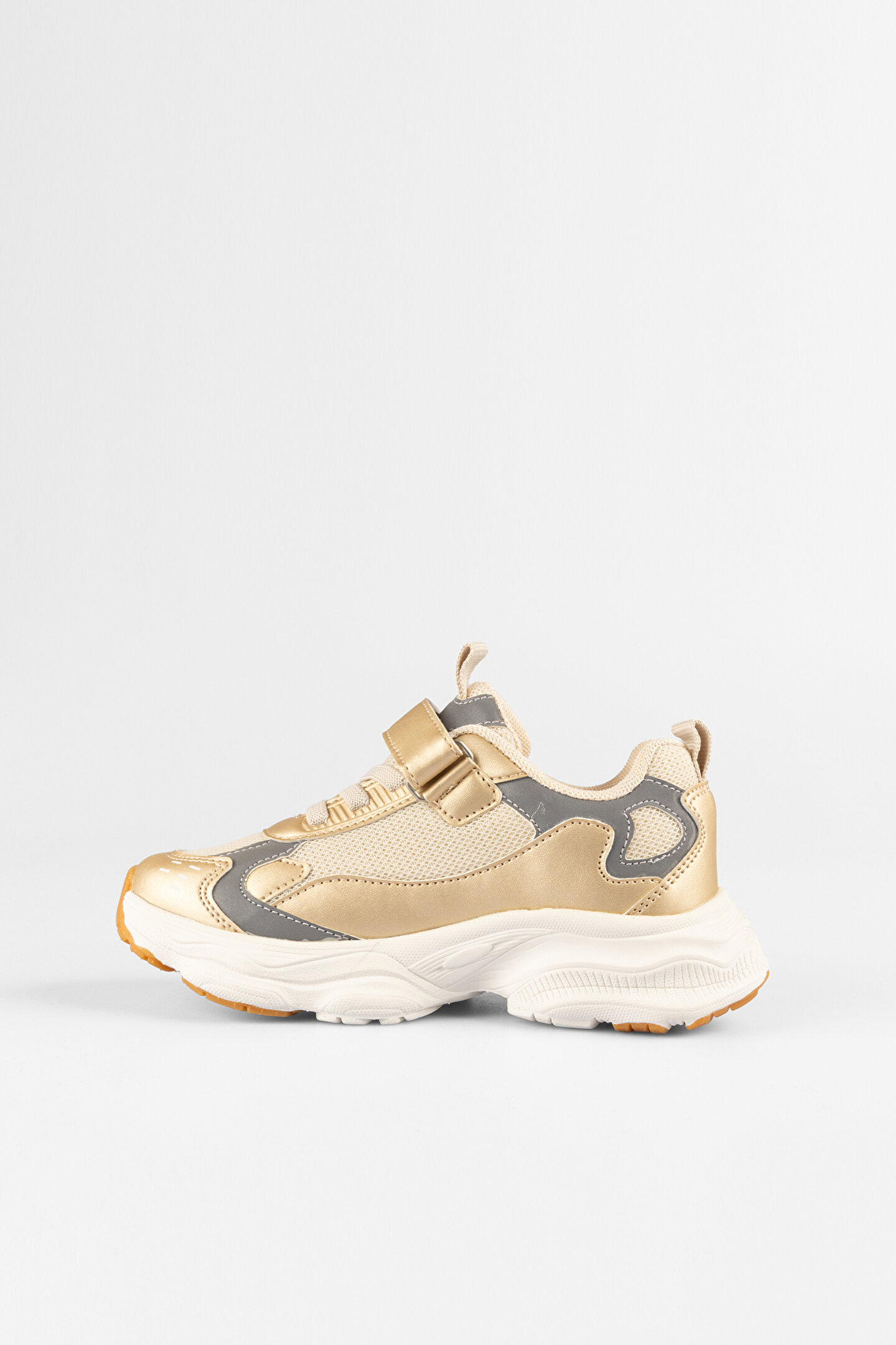- Altın rengiyle dikkat çeken bu spor ayakkabı, kız çocuklarının enerjisine eşlik edecek şık bir tasarıma sahiptir.; - Tekstil materyal bileşeni sayesinde hafif ve rahat bir kullanım sunar, gün boyu konfor sağlar.; - Düz deseniyle sade ve zamansız bir görünüm elde edilirken, bantlı bağlama şekli pratik kullanım imkanı tanır.; - Casual ortamlarda günlük kullanım için ideal olan bu ayakkabı, kız çocuklarının rahat adımlarını destekler.; - Poli taban materyali ile dayanıklılık ve esneklik ön planda tutulmuştur, böylece her adımda maksimum konfor sunulur.; - Düz topuklu tasarımı ile çocukların ayak sağlığını korurken, kısa topuk boyu (1-4 cm) stabiliteyi artırır.; - Türkiye menşeli olan bu ürün, yerel üretim gücünü temsil eder ve kalite standartlarına uygun olarak üretilmiştir.; - Ek özellik bulunmayan bu model, sadeliğiyle ön plana çıkarken makinede yıkama talimatına uymaması uzun ömürlü kullanım vaat eder.; - Dokuma kumaş tipi sayesinde dayanıklılık ve nefes alabilirlik.
