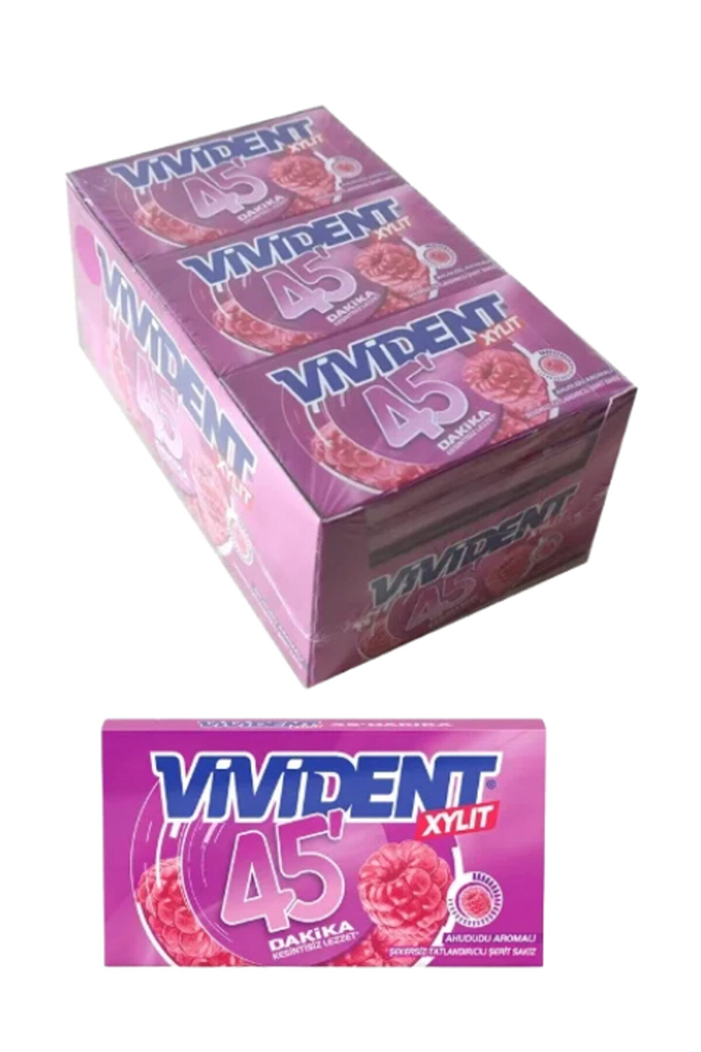 Vivident 45 Dakika Ahududu Aromalı Şekersiz Tatlandırıcılı Şerit Sakız 26 GR * 18 Adet