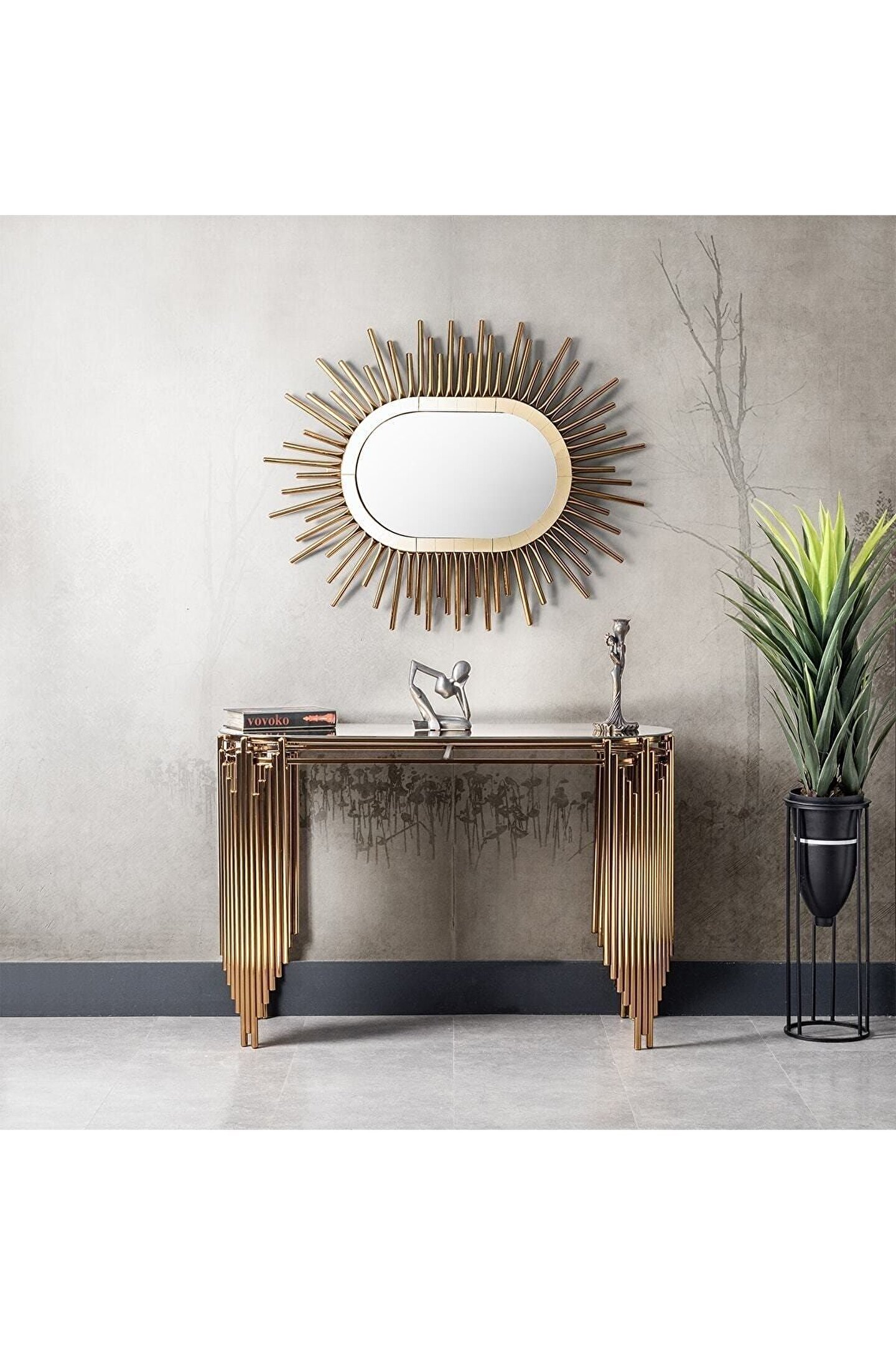 VOVOKO Aynalı Dresuar Takım Dresuar Pufsuz 140cm Ultra Lak Kaplama Konsol