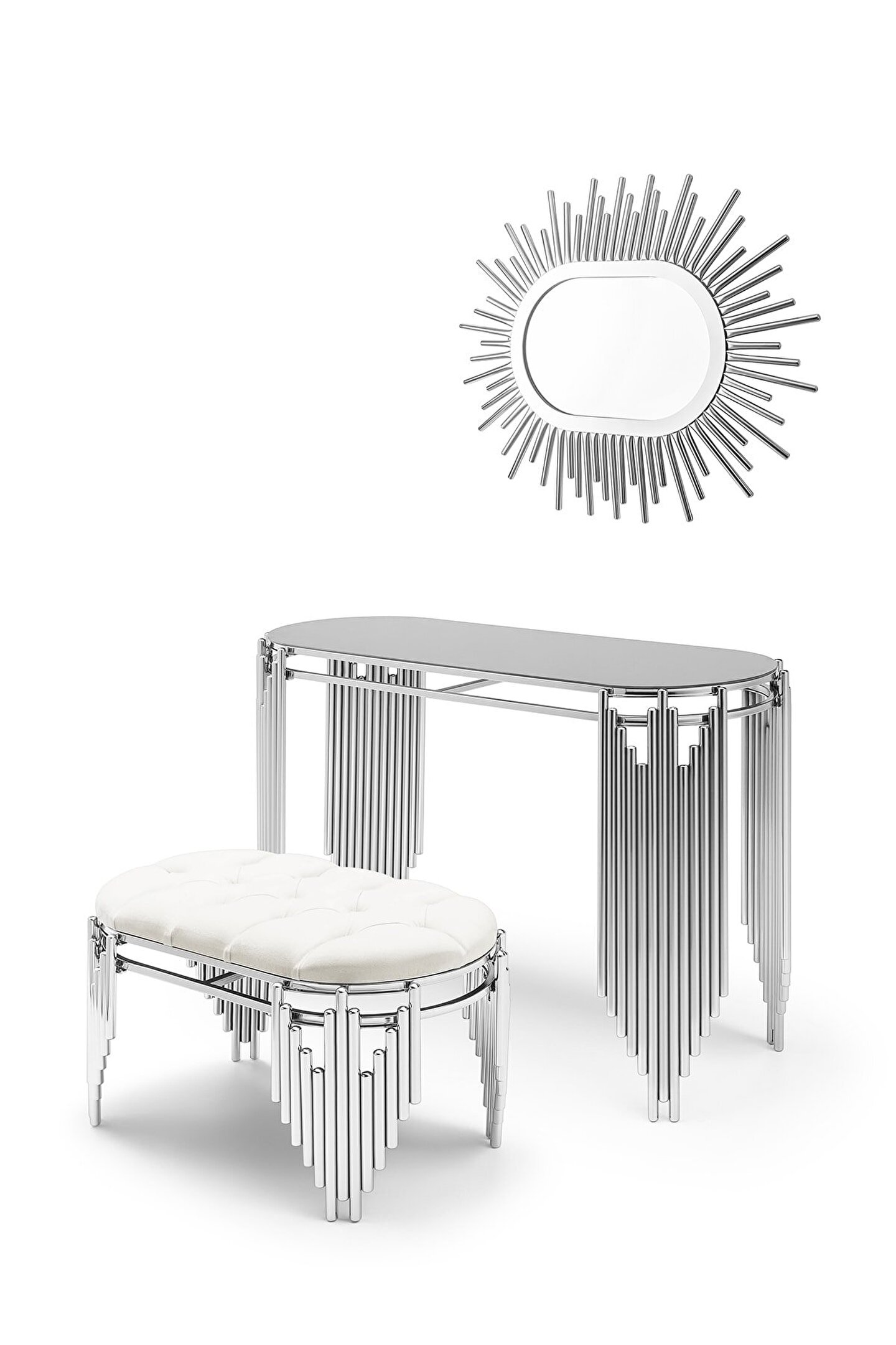 Müşterimizin evinden çekilen görsellerdir. Lüx dresuar takımımız ile evlerinize bizimle birlikte güzellikler katmaya ne dersiniz? ; Ürün içeriği dresuar ve Puftur. Ürünlerimiz 2 yıl garantilidir. ; Aynalı dresuar 1. Kalite gold krom kaplama. ; Ölçüler: Yüzey: 120x45 cm yükseklik:80 cm ; 140CM ÜRÜN STOKLARIMIZDA MEVCUTTUR.; DRESUAR UZUNLUK 120CM YÜKSEKLİK 80 CM GENİŞLİK 42,5 CM. ; Puf 80 cm uzunluk 45 cm genişlik 45 cm yükseklik ölçülerindedir . ; ÜRÜN İÇERİĞİ AYNA DRESUAR VE PUFTUR. ; PUF RENKLERİ KREM SİYAH VE GRİDİR.SATICI İLE İLETİŞİME GEÇİP RENK SEÇENEĞİNİ BELİRTEBİLİRSİNİZ. ; ;