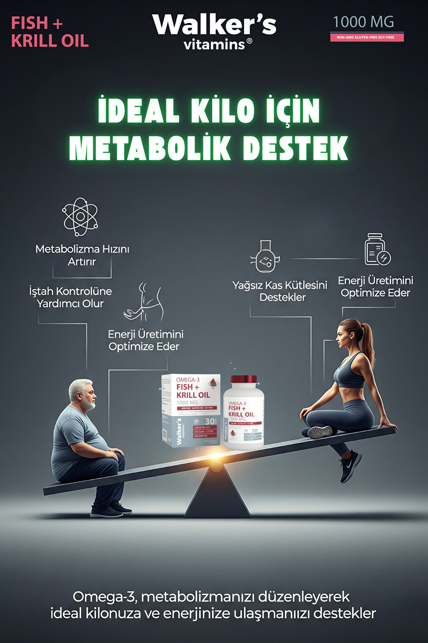 Walkers Krill Oil Omega 3 Sitikolin Lutein Q10 içeren Vitamin