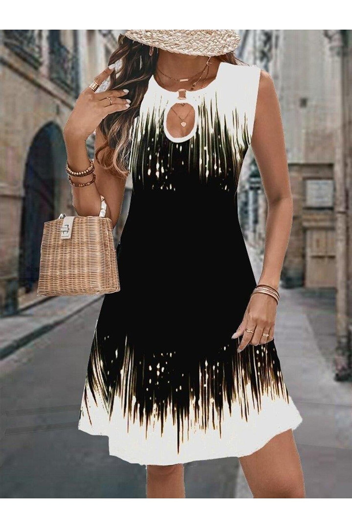 Kadın Yaka Damla Dekolteli Siyah Beyaz Desenli Dalgıç Elbise