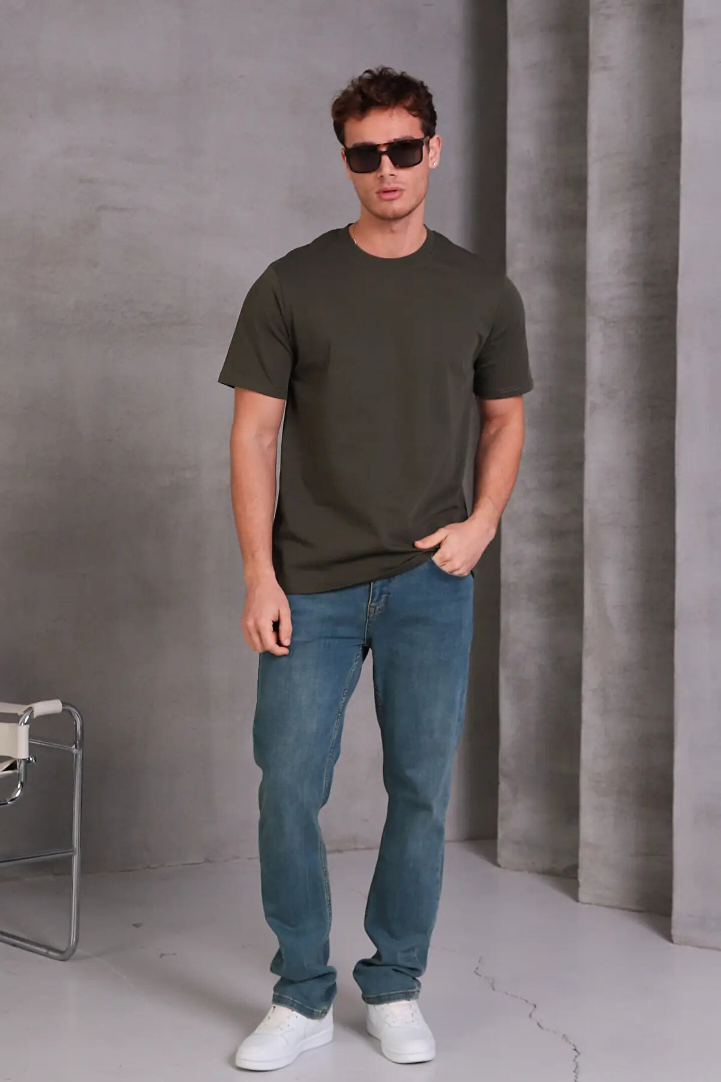 Erkek Relax Fit Bisiklet Yaka %100 Pamuk Rahat Kesim Basic Tişört