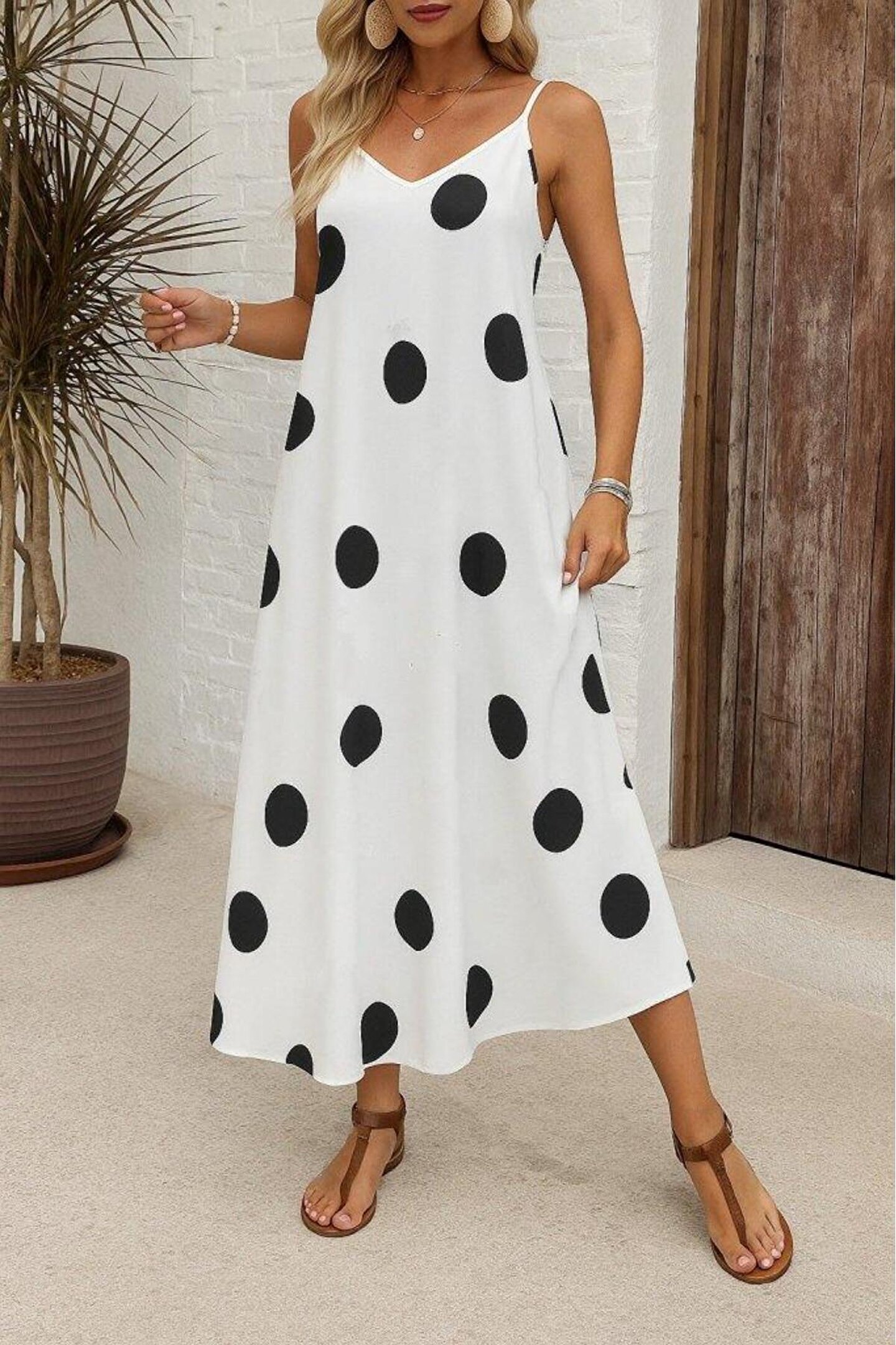 Kadın Ip Askılı Geniş V Yakalı Desenli Süprem Elbise