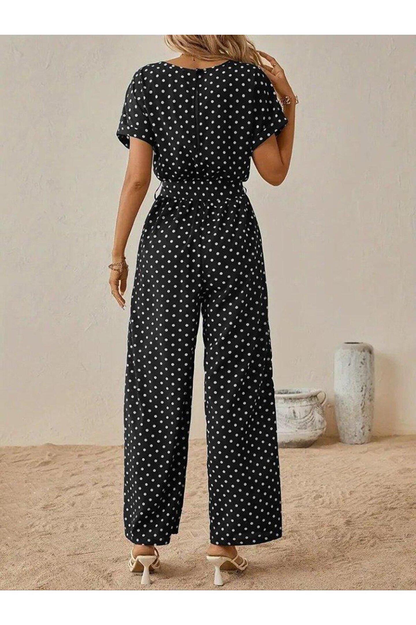 Wear Up Kadın Kısa Kollu Kayık Yaka Belden Kuşaklı örme Krep Tulum