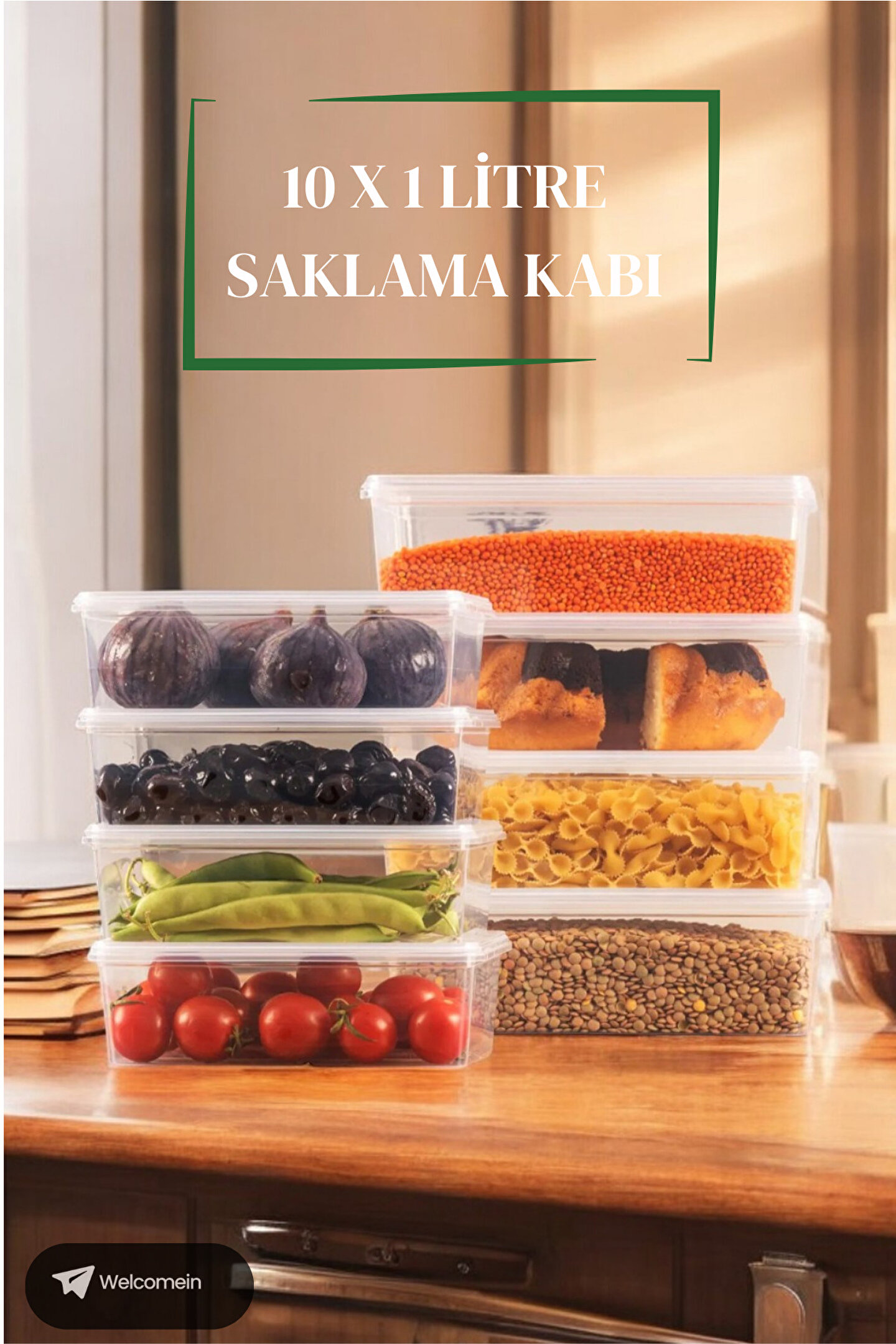 - **Adet:** 10 adet 1 litre kapasitesine sahip saklama kabı.