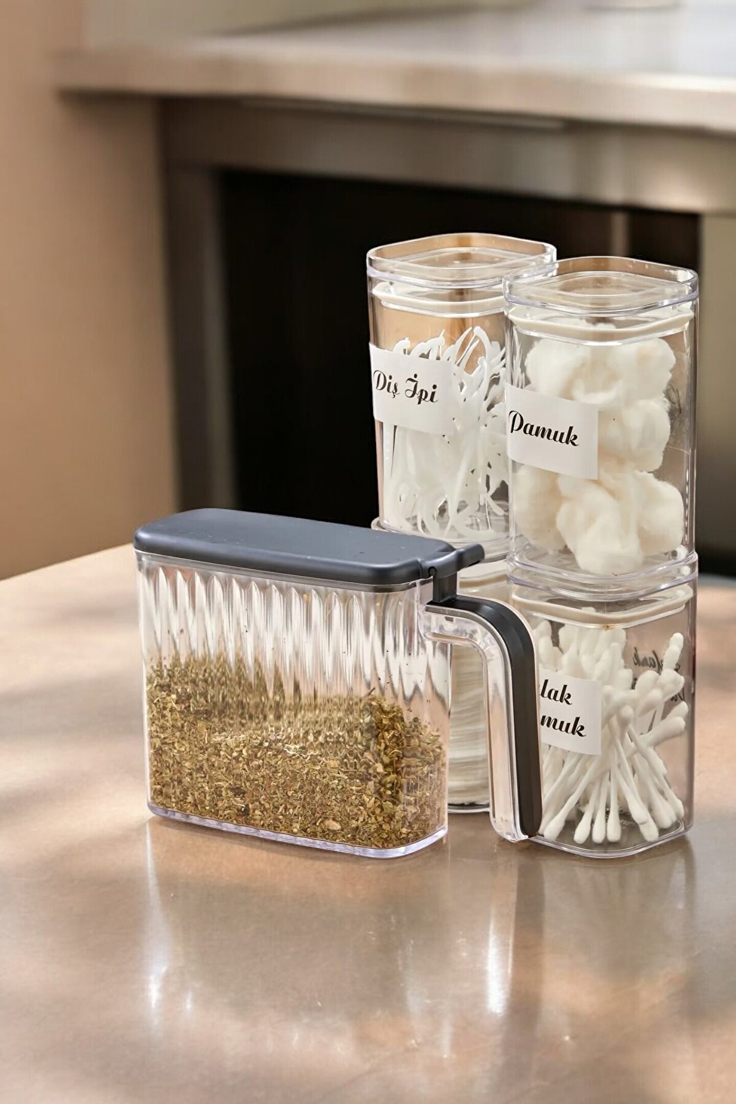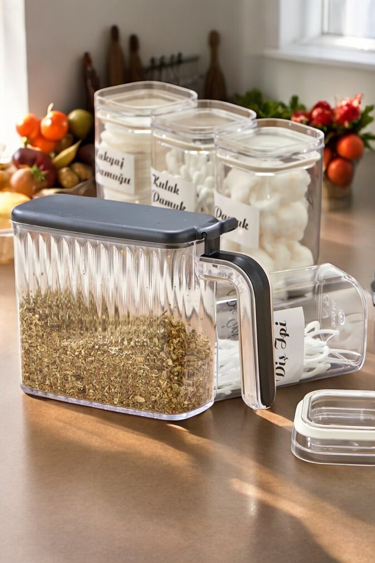welcomein 12li Standlı Kendinden Yapışkanlı Kapaklı Kaşıklı Baharatlık Takımı Ve 4lü Şeffaf Kapaklı Banyo Seti