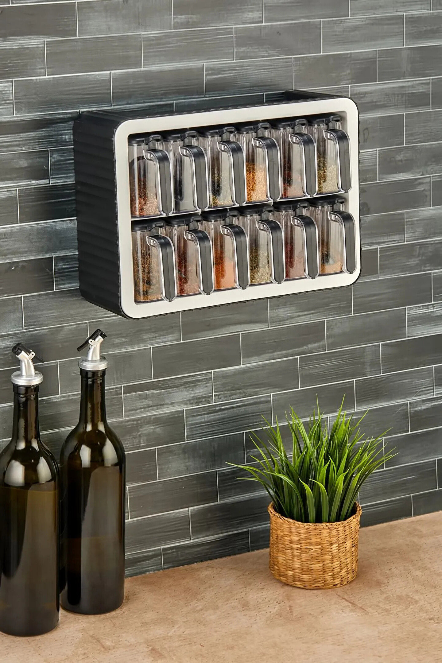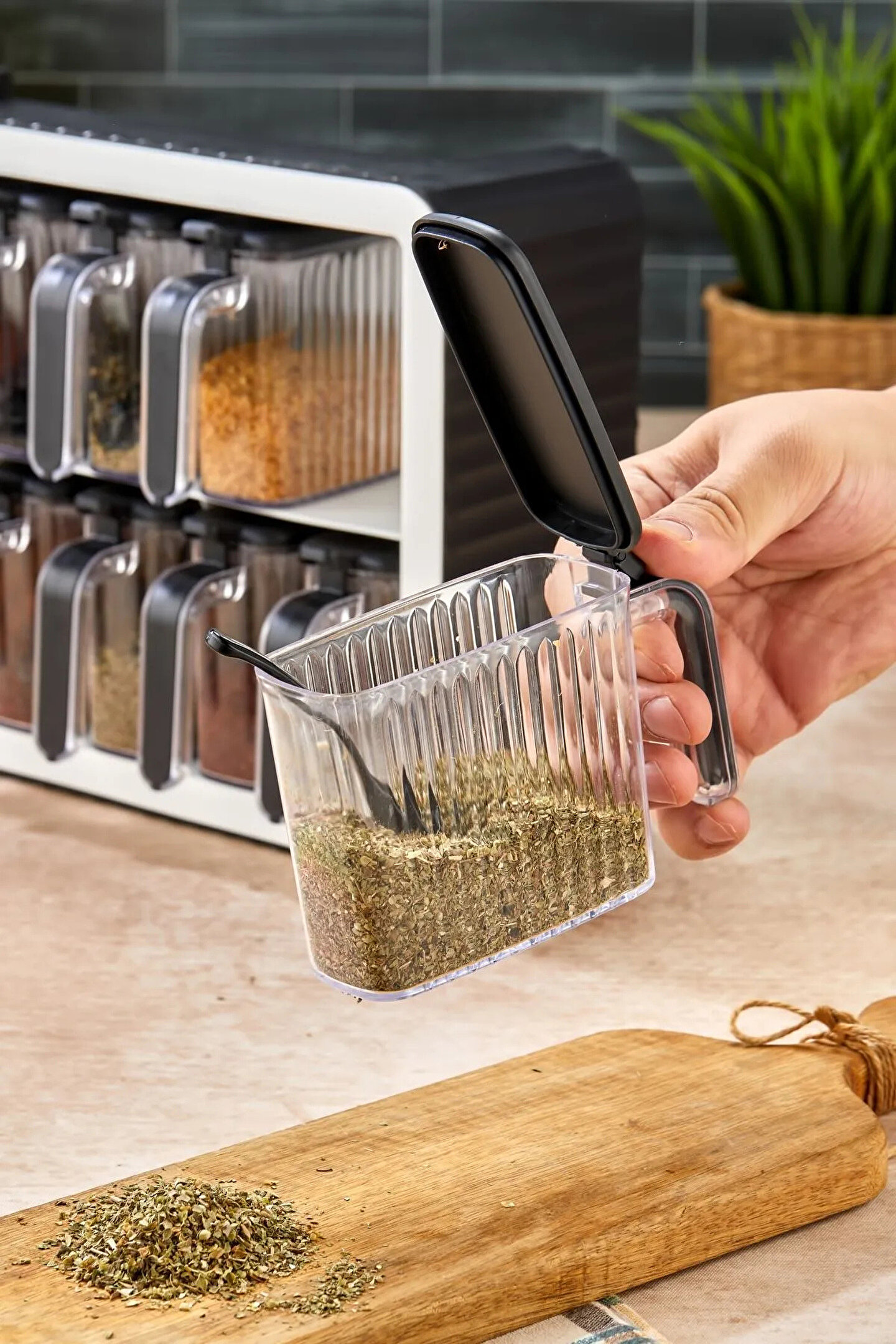 welcomein 12li Standlı Kendinden Yapışkanlı Kapaklı Kaşıklı Kulplu Etiketli Çizgili Baharatlık Takım Organizer