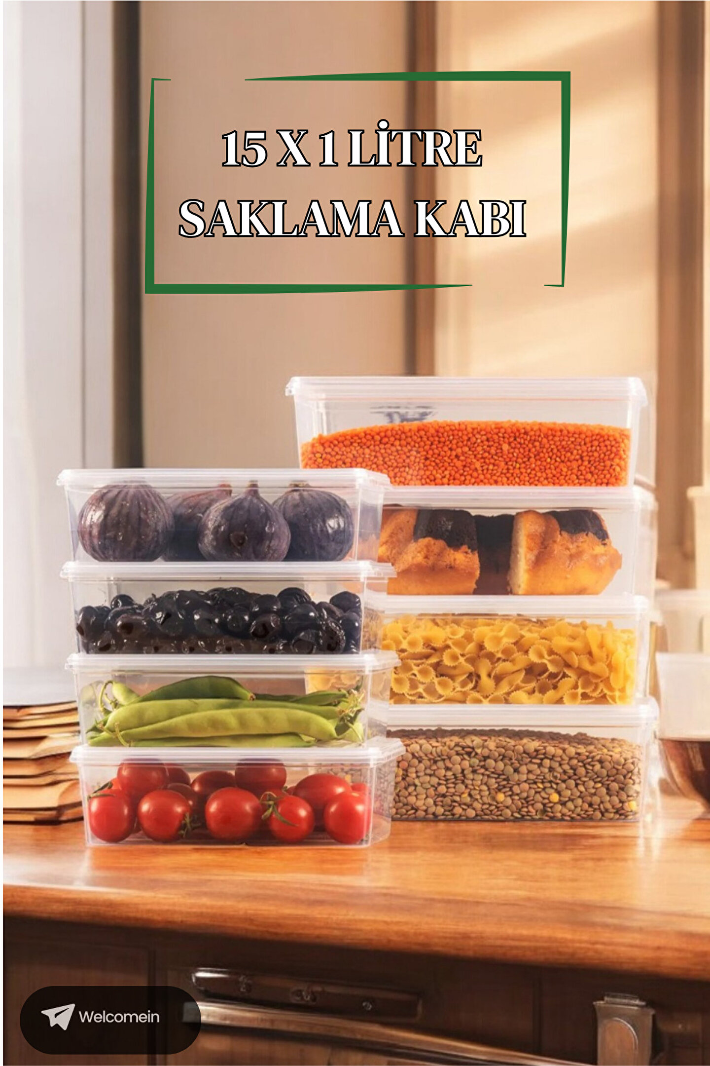 - **Adet:** 15 adet 1 litre kapasitesine sahip saklama kabı.