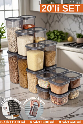 55 Tekrar Kullanılabilir Etiket — 20 adet kuru gıda saklama kabı hariç, 55 adet etiket de alacaksınız. Tekrar kullanılabilirler, ihtiyaç duyduğunuzda içerikleri değiştirebilirsiniz. Yazdıklarınızı değiştirmek için nemli bir bezle silin, Soyun ve Tekrar Yapıştırın.