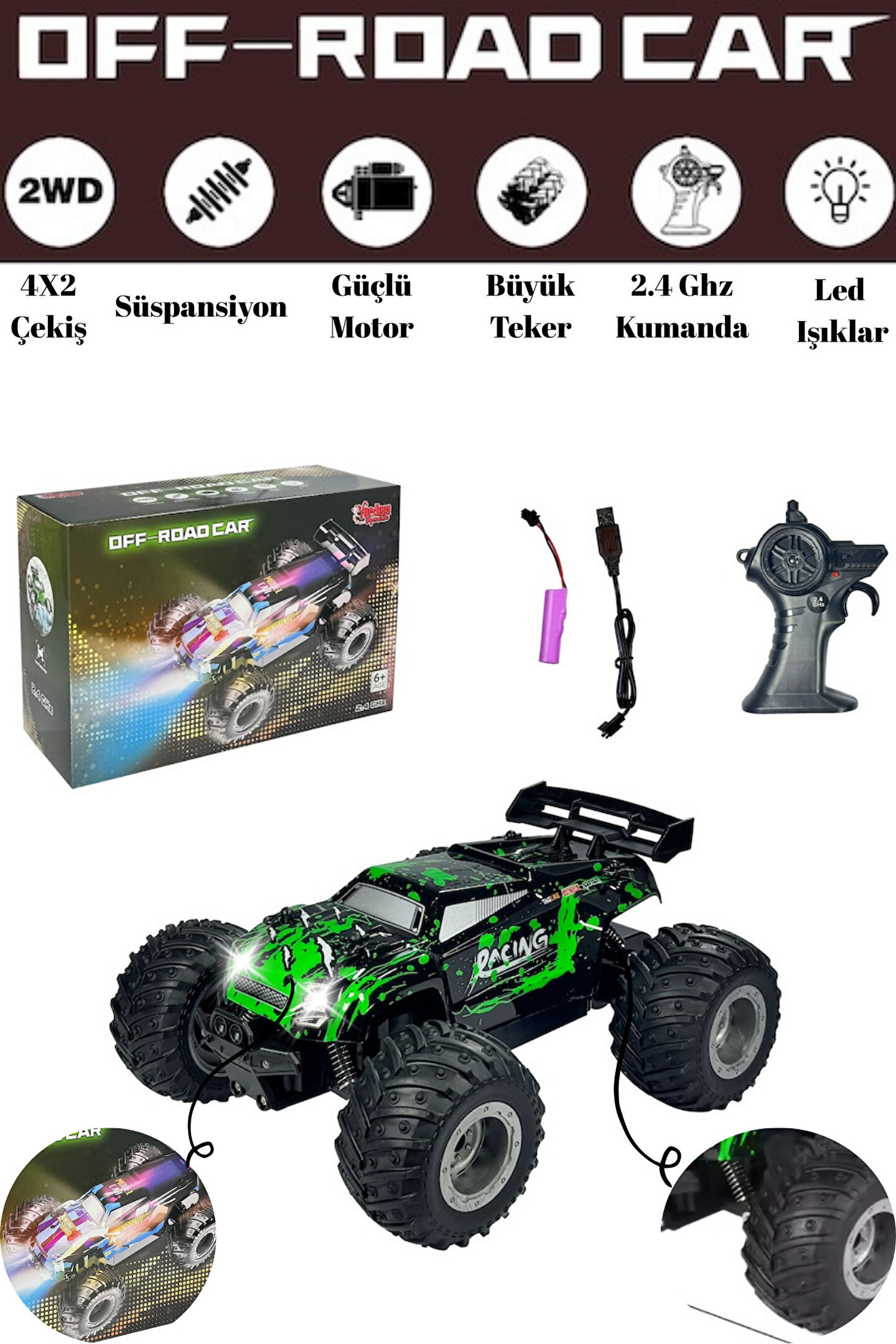 welcomein 2.4 GHz Uzaktan Kumandalı Şarjlı Araba Full Fonksiyon Işıklı 1:18 High Speed Off Road 40 Dk. Sürüş