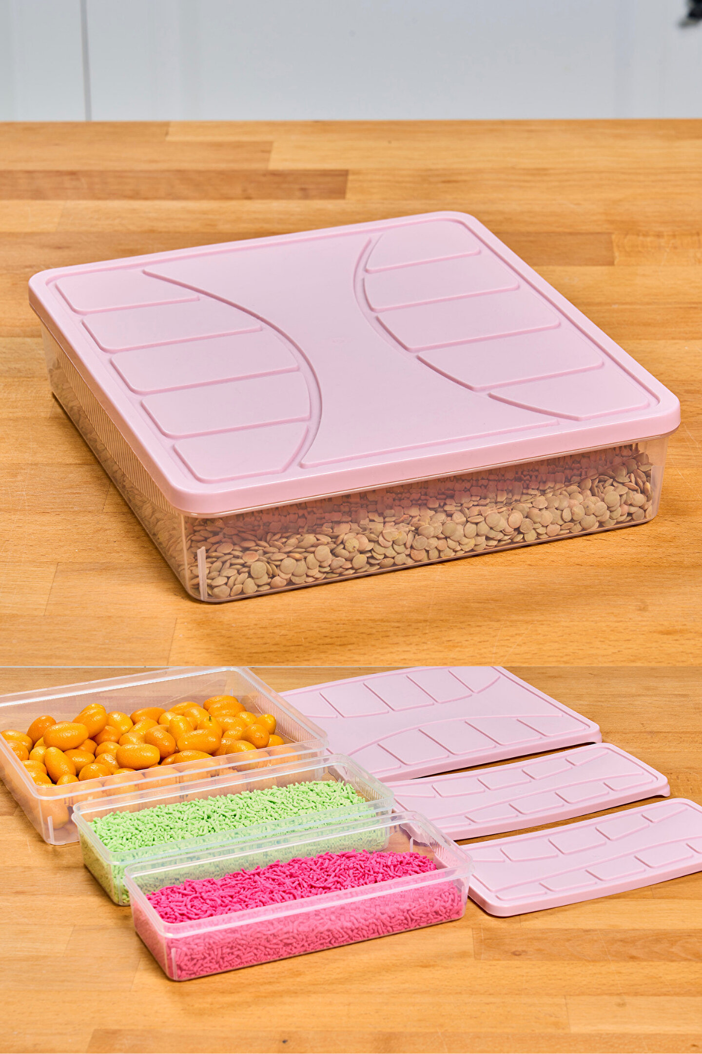 • - Dondurucu kabı olarak da kullanılabilen bu set, dondurucunuzda yiyeceklerinizi düzenli ve düzenli bir şekilde saklamanız için idealdir