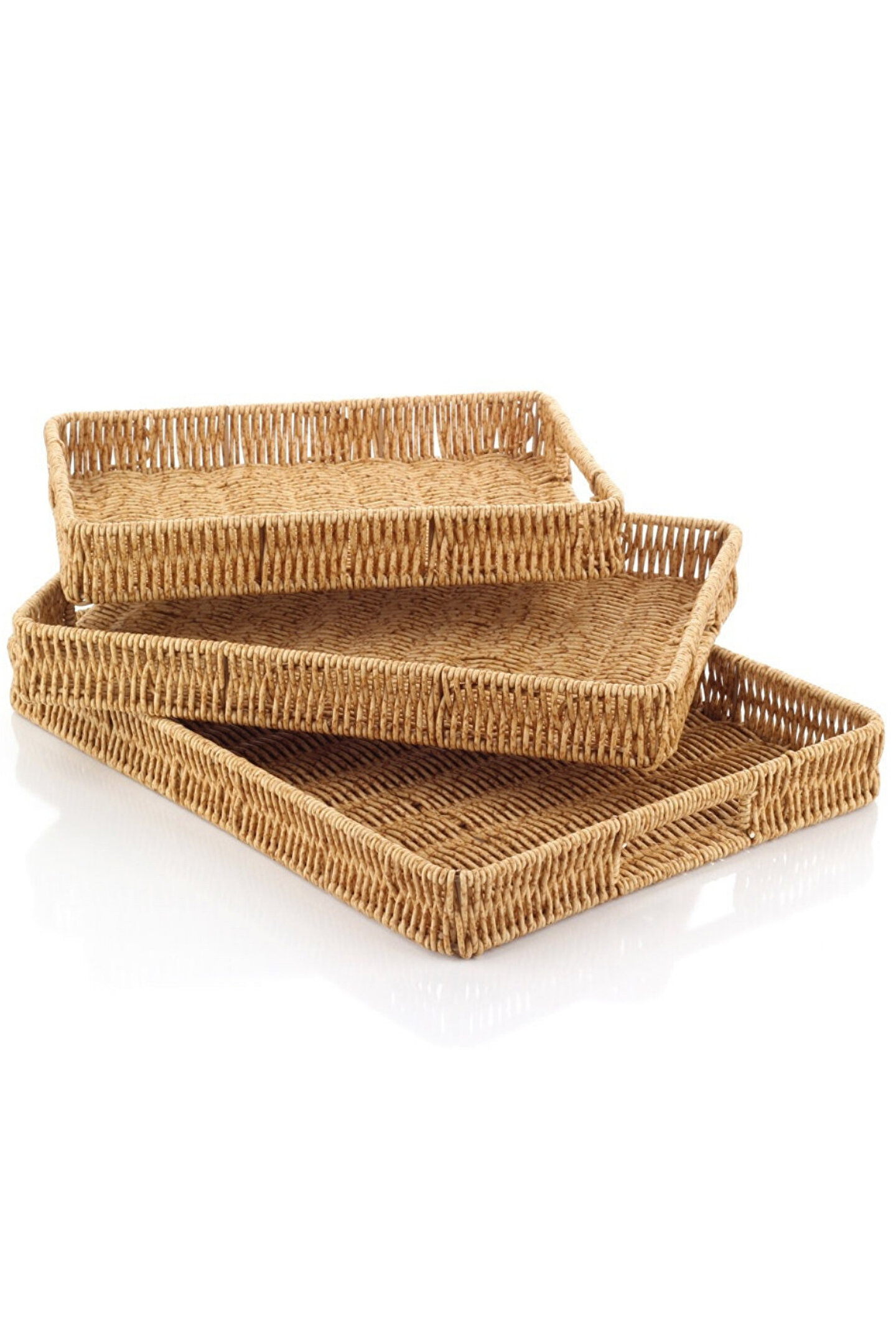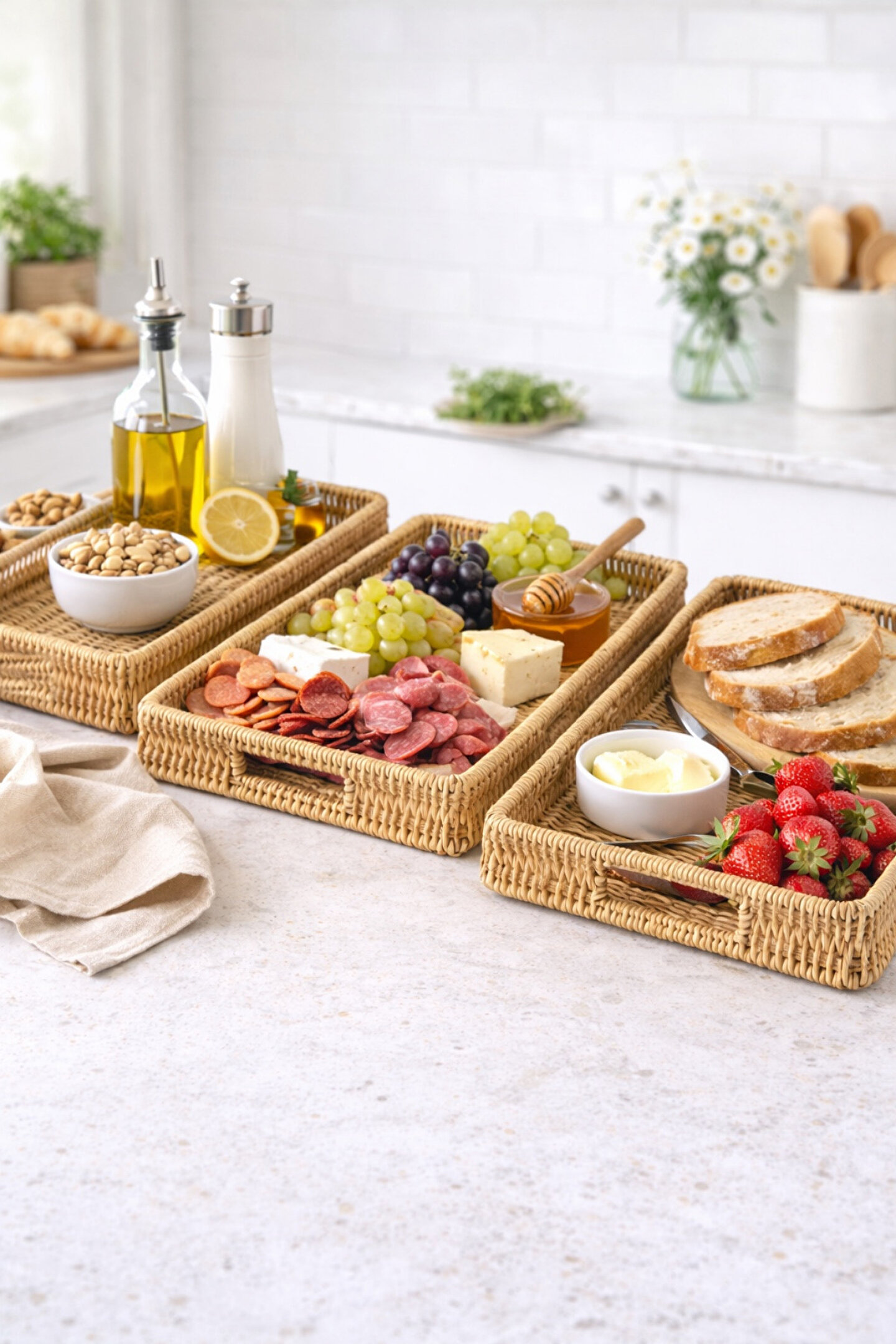 Doğal dokulu 3’lü rattan dikdörtgen tepsi seti, evinizde hem şık servis hem de düzenleme için ideal bir tamamlayıcıdır. Kahvaltı sunumları, çay-kahve servisi, atıştırmalıklar, misafir ikramları ve dekoratif düzenlemelerde pratik kullanım sağlar.