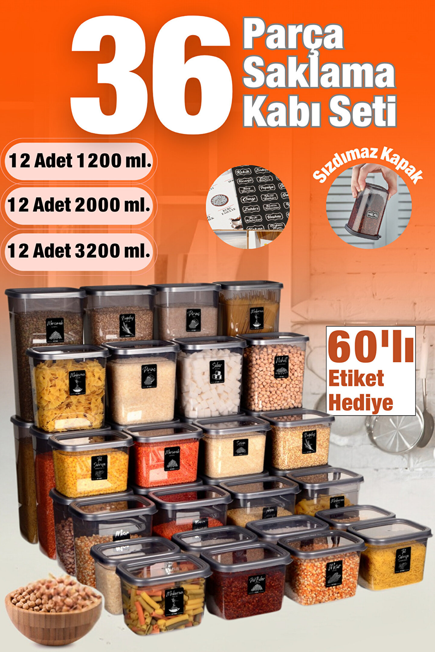 welcomein 36 Adet 72 Parça 1,2-2,0-3,2 Litre Dikdörtgen Sızdırmaz Erzak Bakliyat Saklama Kabı Çeyiz Seti