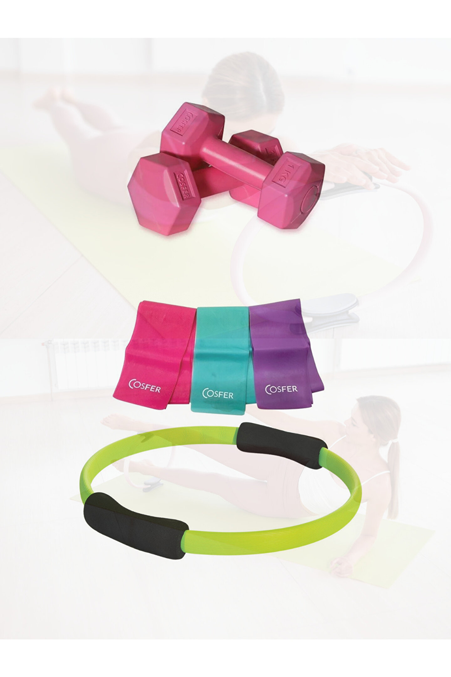 - Pilates egzersizlerinizi evinizin konforunda gerçekleştirebileceğiniz 3'lü set, fitness rutininizi kolayca şekillendirmenize olanak tanır.; - Direnç lastikleri ve dambıllar ile farklı kas gruplarını hedef alarak dengeli bir antrenman programı oluşturabilirsiniz.; - Pilates çemberi sayesinde esneklik ve denge egzersizlerinizi daha etkili bir şekilde yapabilirsiniz.; - Nemli bir bezle kolayca temizlenebilen bu set, hijyenik kullanım için idealdir.; - CN menşei, kalite ve güvenilirliği temsil eden bir üretim standardını garanti eder.;