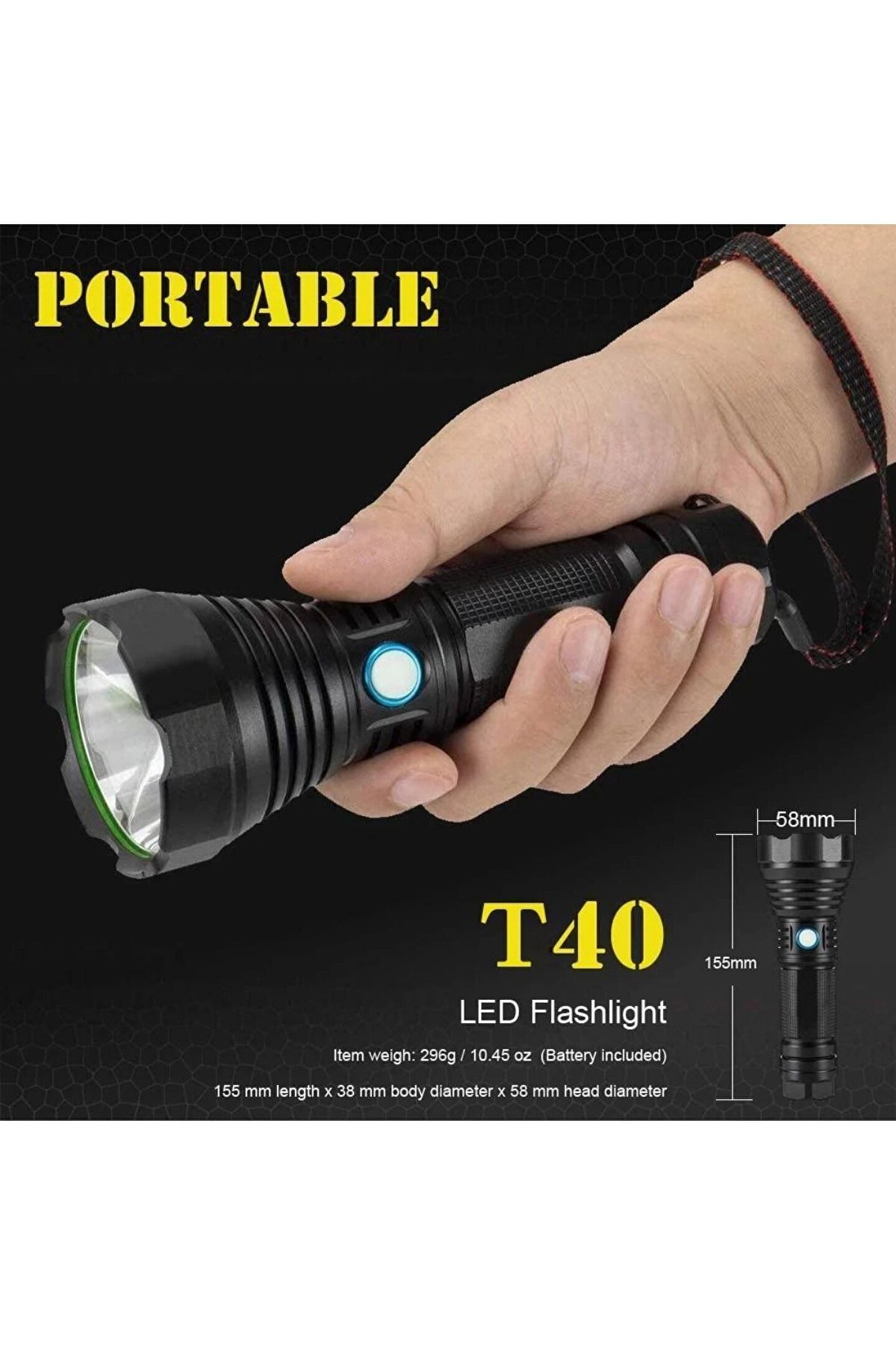 Genel Bakış Ürünü rapor et Özellik: Kamp, dağ tırmanma, yürüyüş, gece balıkçılığı, mağara keşif ve diğer açık hava etkinlikleri için uygundur; Su geçirmez: yağmurlu günlerde kullanılabilir, (ama suda değil); Ürün parametreleri: Mod: 5 mod (güçlü ışık, orta ışık, düşük ışık, uzun basın 3 saniye için anahtarı, yanıp sönen)LED : SST; 40 LEDGövde malzemesi: alüminyum alaşımLens malzemesi: cam lenslerYayan renk: beyaz ışıkPil tipi: 1; 18650 pil veya 1; 26650 pil (dahil değildir)Şarj cihazı: mikro usb Paket içerir: Pil yok: 1 × el feneri (pil şarj cihazı hariç)1 × USB şarj kablosu;