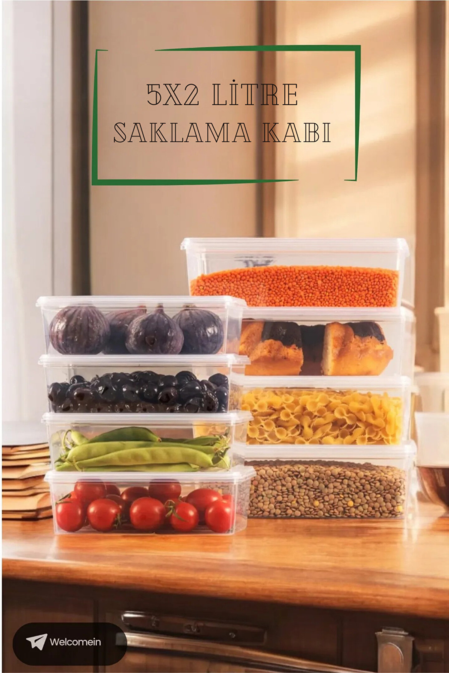 welcomein 5 Adet 2lt. Kendinden Kapaklı Derin Dondurucuya Uygun Saklama Kabı Düzenleyici (2000 ML)