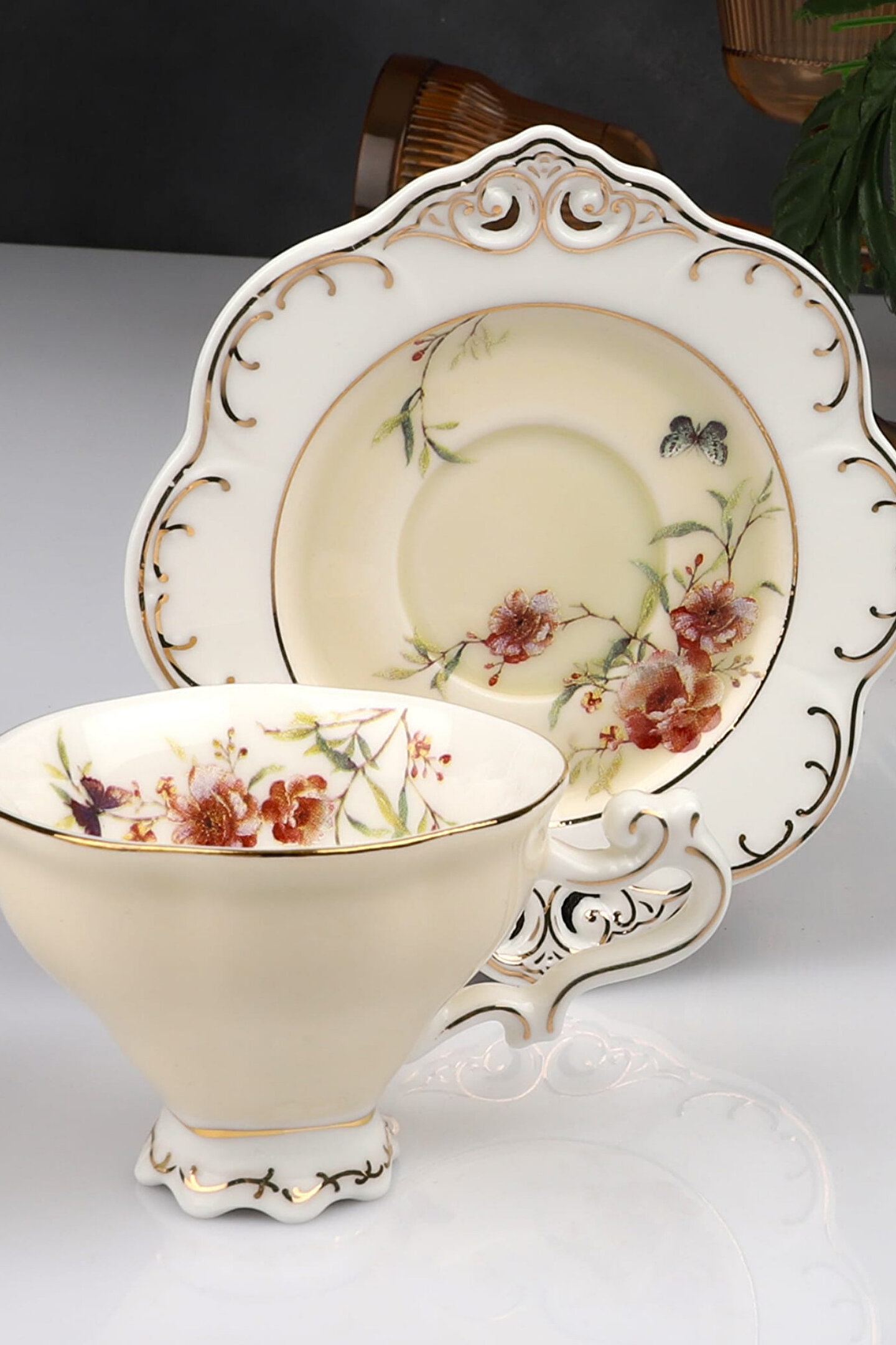 Set İçeriği: Görselde 6 adet fincan ve fincan tabağı olduğu anlaşılmaktadır (6'lı kahve fincan takımı).