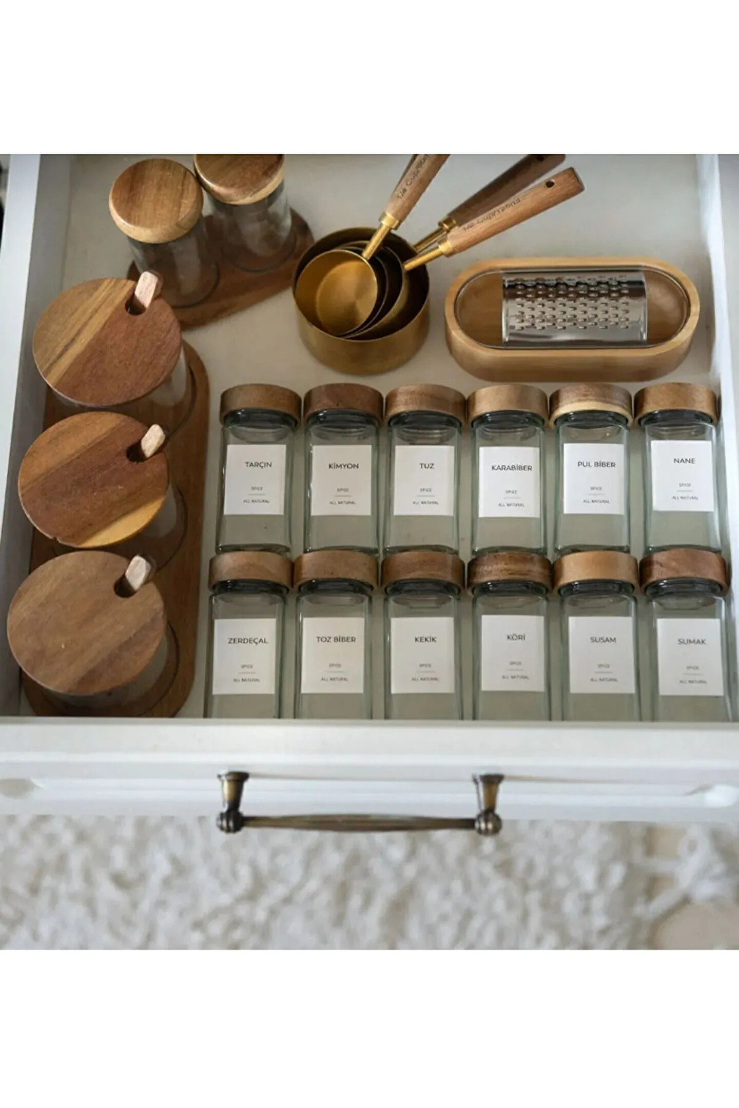 • Akasya kapaklı baharatlıklar şık ve kullanışlı çözüm sunan saklama kaplarıdır. Akasya, doğal ve sürdürülebilir bir malzemedir.