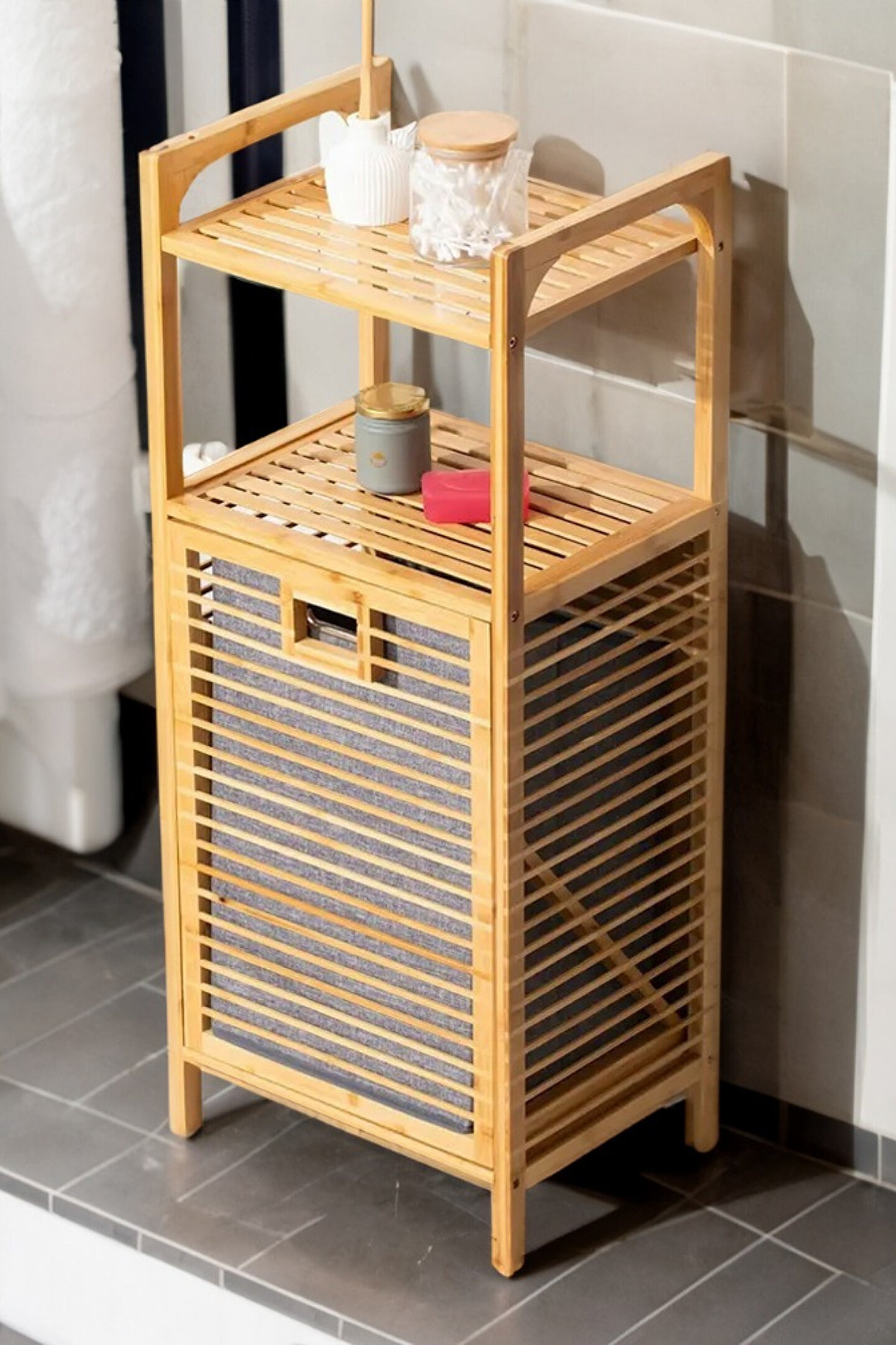 Welcomein bambu banyo rafı ve çamaşır sepeti, doğal bambu malzemesiyle banyonuza sıcak ve modern bir hava katarken, işlevselliğiyle günlük yaşamınızı kolaylaştırır.