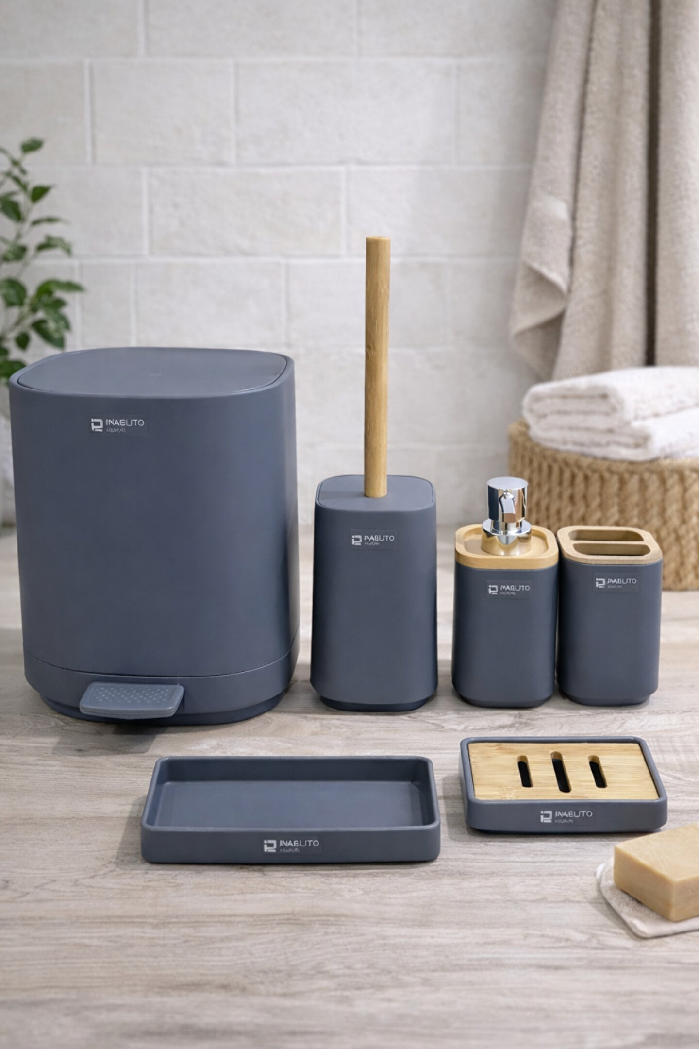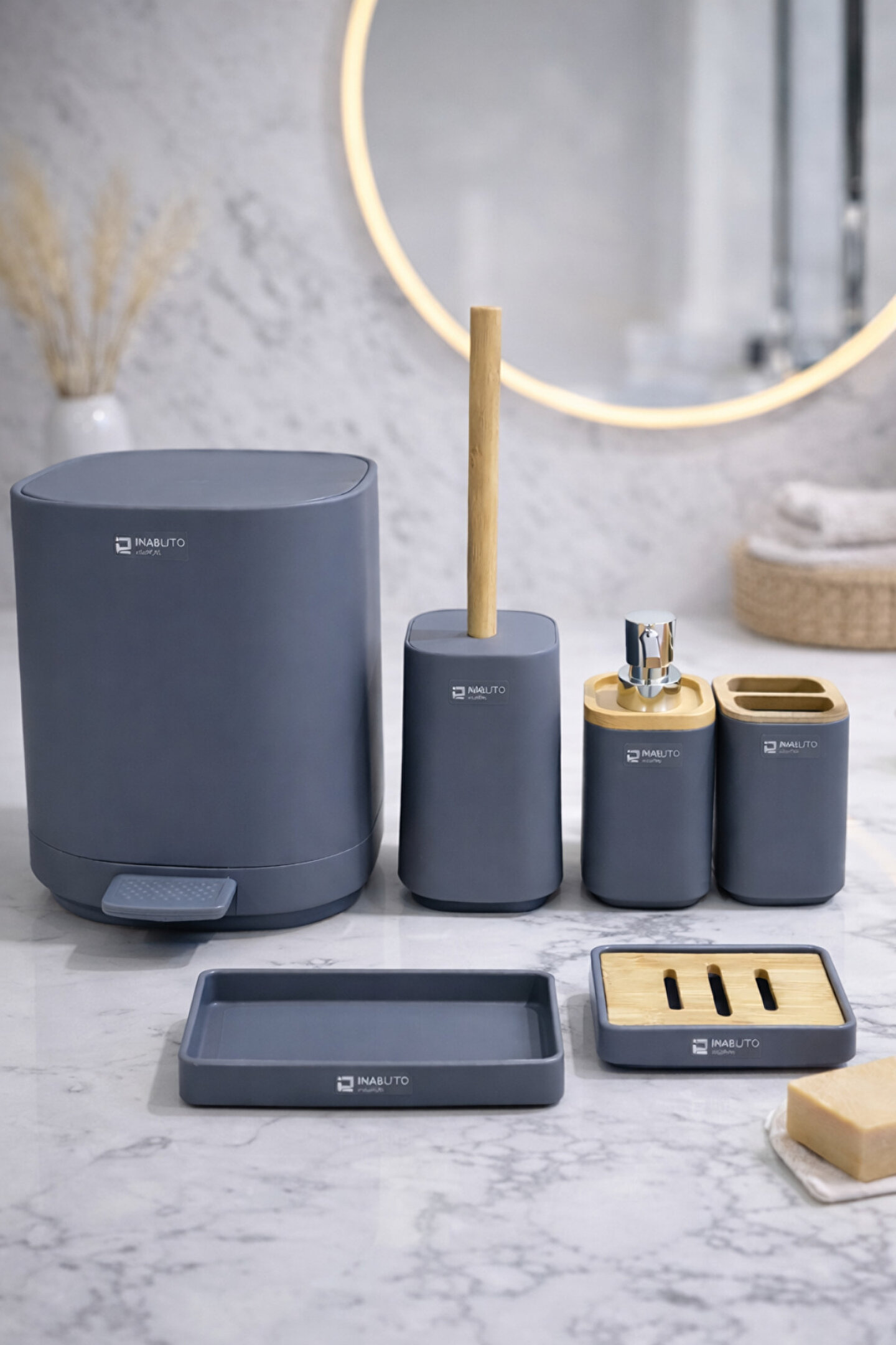 Banyonuzda modern ve düzenli bir görünüm için tasarlanan bambu detaylı 6 parça banyo aksesuar seti, hem tezgah üstünde şık bir düzen sağlar hem de günlük kullanım için pratik çözümler sunar. Mat yüzeyi ve doğal bambu dokusu sayesinde minimal, modern ve bohem tarz banyolara uyum sağlar.
