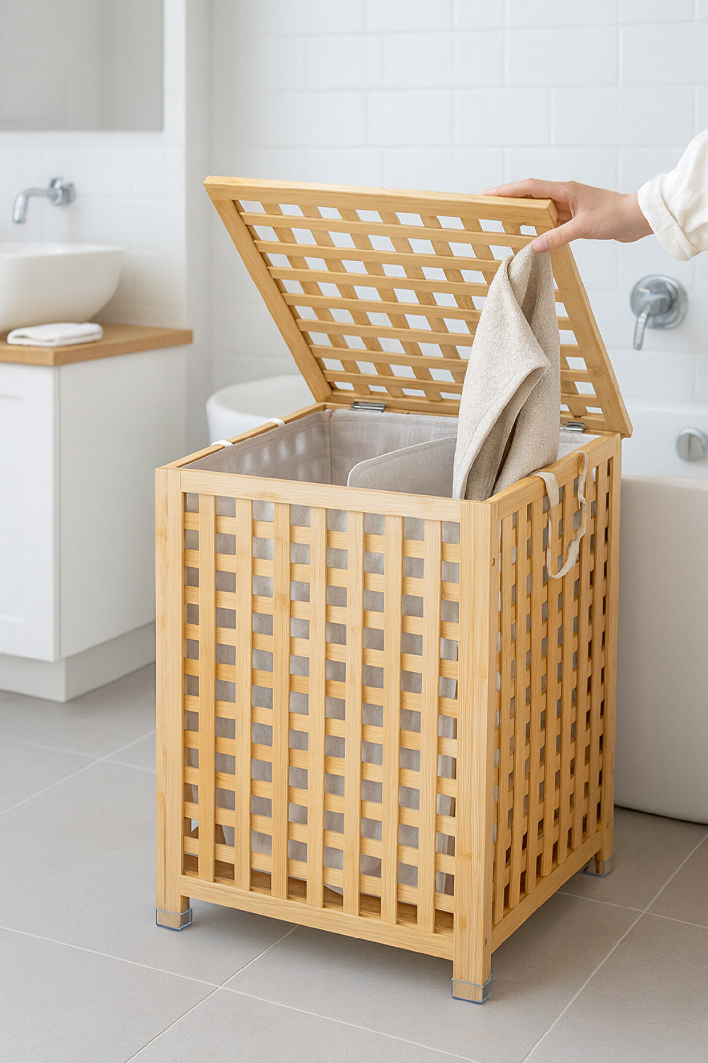 Welcomein bambu çamaşır sepeti ile dağınık çamaşırlar şık bir detaya dönüşsün.; Doğal bambu gövdesi, modern kafes deseni ve kapaklı tasarımı sayesinde hem banyonuzda hem yatak odanızda dekoratif bir görünüm sunar.; Doğal bambu malzeme ile sıcak ve modern görünüm Koku ve nem oluşumunu azaltmaya yardımcı hava alan kafes tasarım Makinede yıkanabilir, çıkarılabilir iç kumaş torba Yanlarda taşıma sapları ile kolayca taşınabilir Çamaşır, oyuncak, battaniye ve düzen kutusu olarak çok amaçlı kullanım Geniş iç hacmi sayesinde tüm aile bireylerinin çamaşırlarını tek sepette toplayabilir, kapağı sayesinde dağınık görüntüyü gizleyerek evinizde her zaman düzenli ve ferah bir atmosfer yakalayabilirsiniz.;