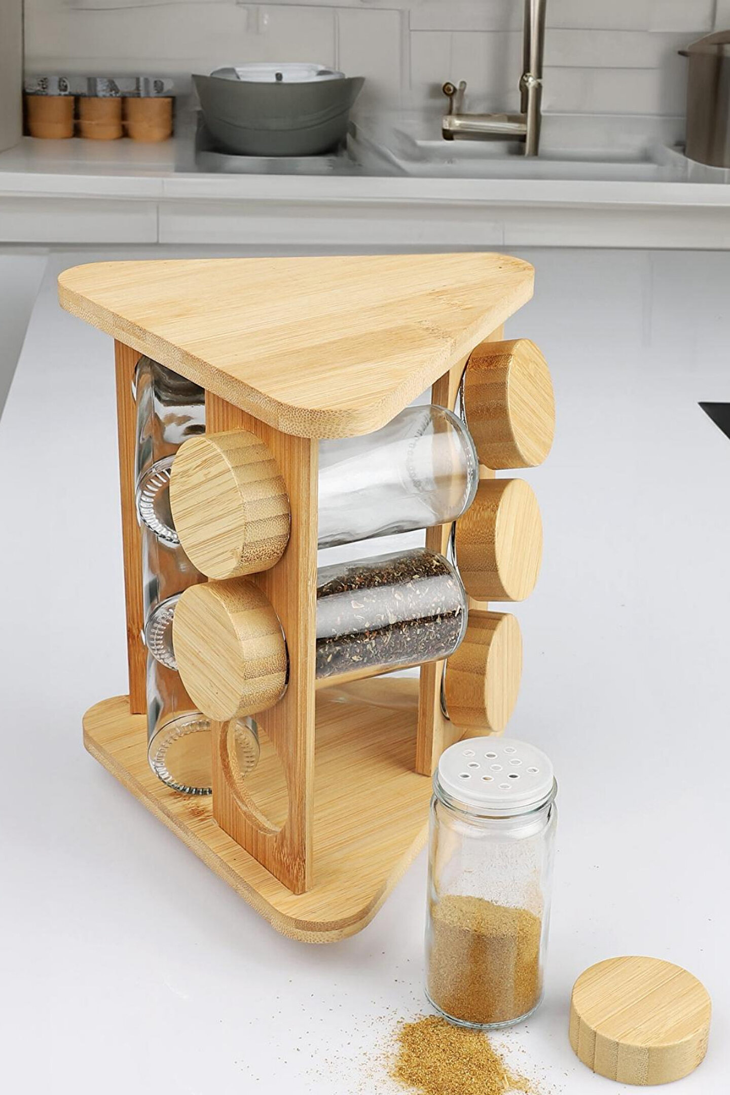 Mutfaklarınıza hem düzen hem de şıklık katacak Bambulu Döner Standlı 12’li Cam Baharatlık Seti, pratik kullanımı ve estetik tasarımıyla mutfaklarda vazgeçilmez olacak.