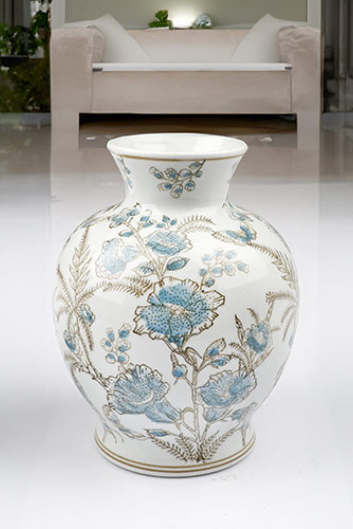 Mavi Çiçek Baskılı Seramik Vazo - 29 cm