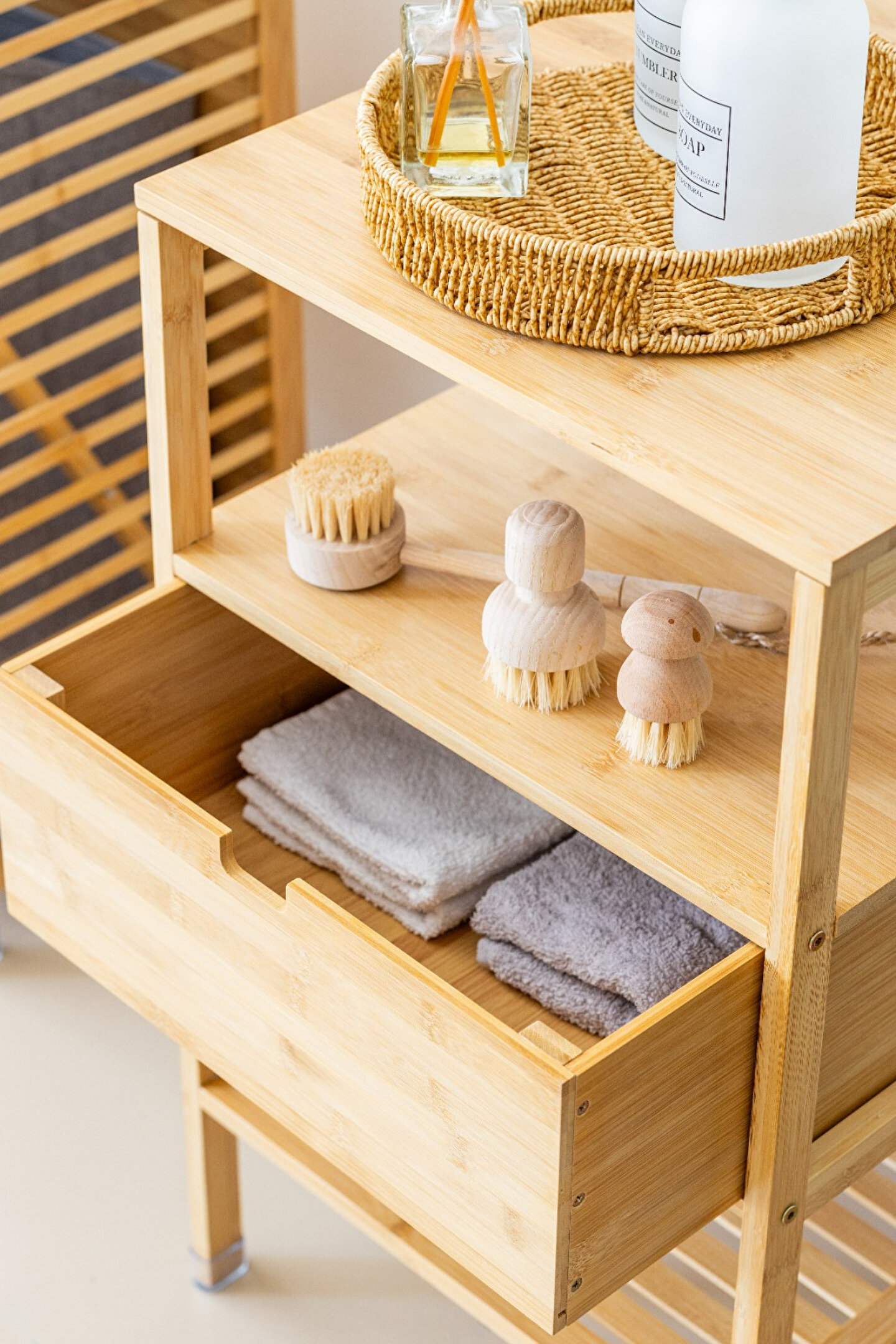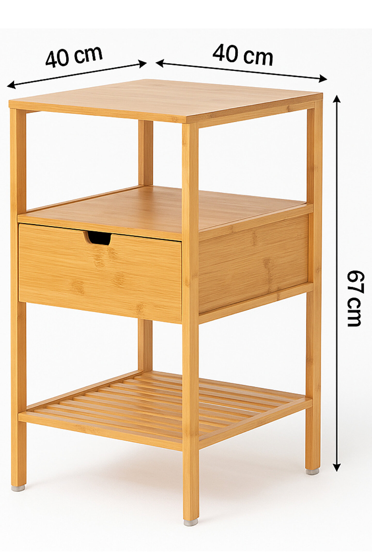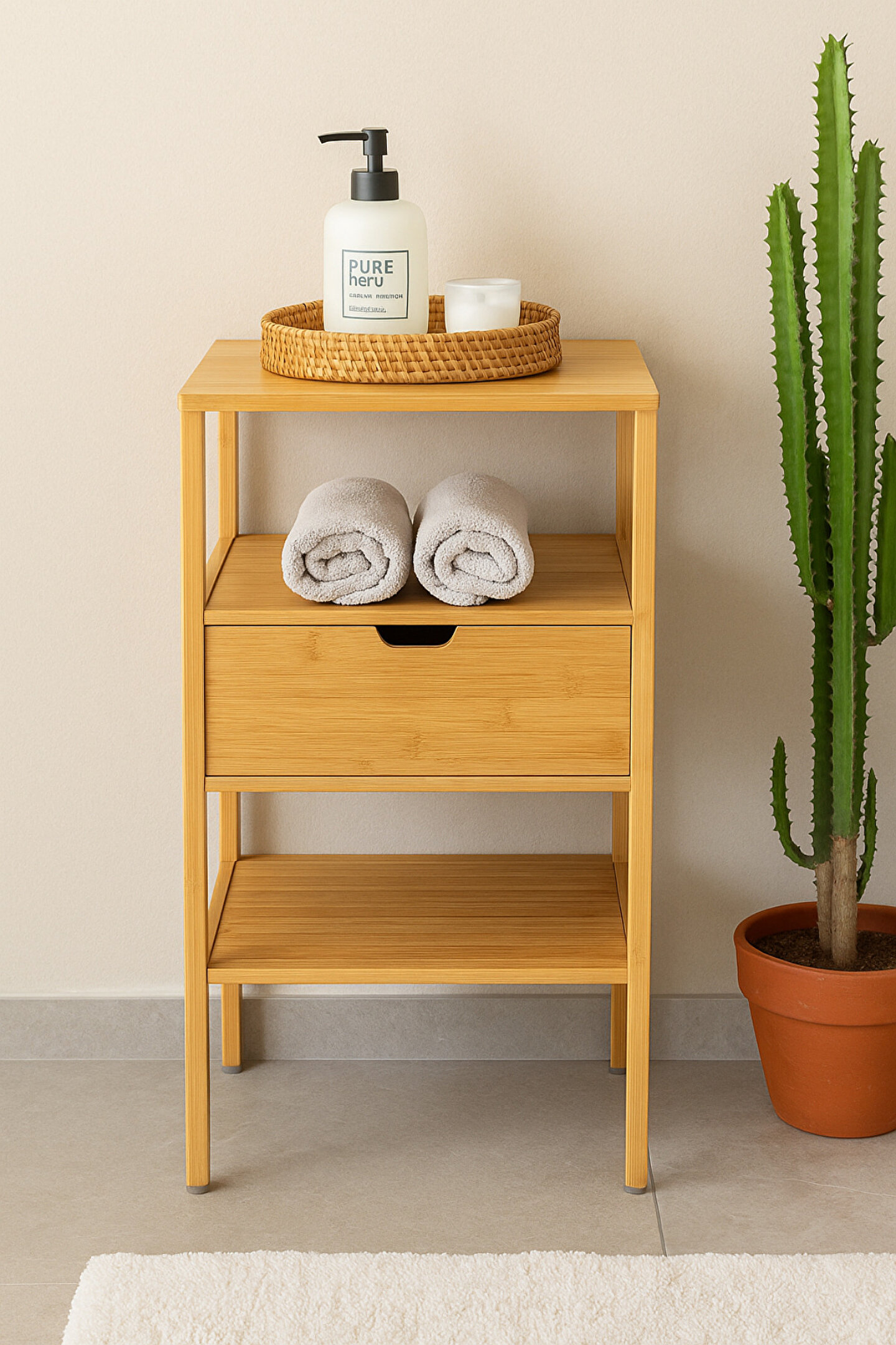 Doğal bambudan üretilmiş, modern tasarımı ve fonksiyonel çekmecesiyle eşyalarınızı hem şık hem de düzenli bir şekilde saklayabilirsiniz.