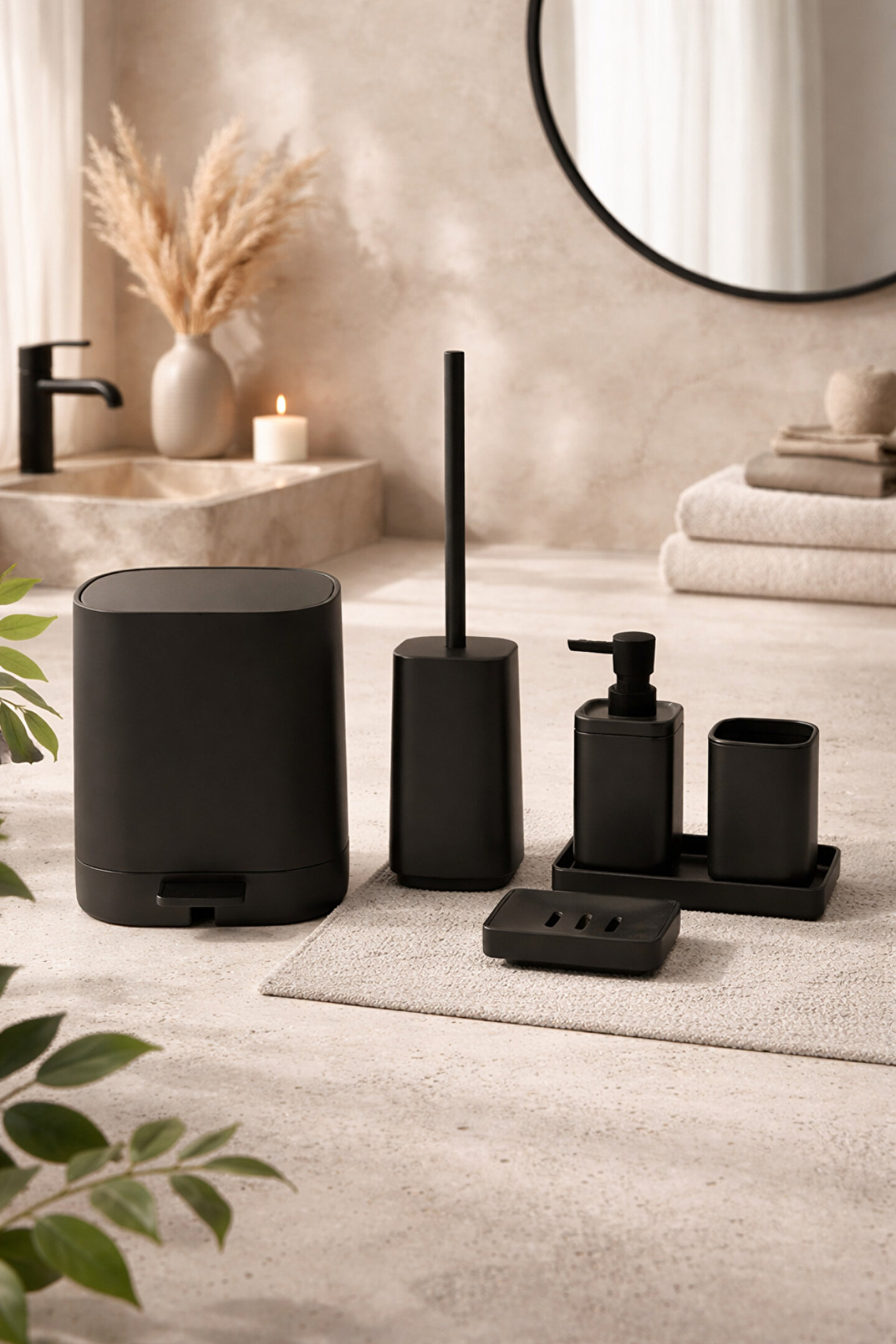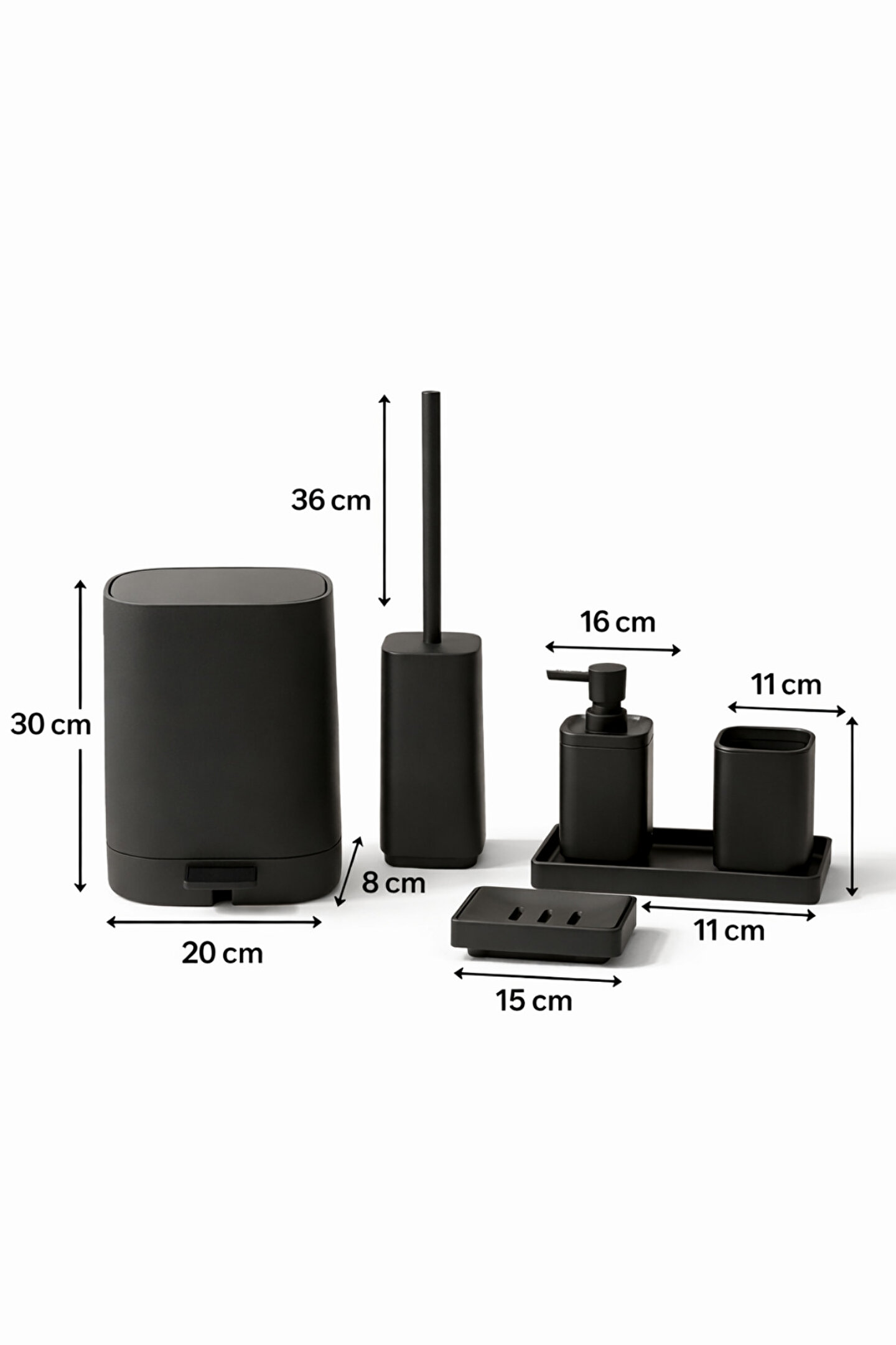 Banyonuzda hem şık bir görünüm hem de düzenli bir kullanım sağlamak için tasarlanan kare 5 parça banyo seti, uyumlu renk seçenekleriyle dekorunuza kolayca uyum sağlar. Mat yüzeyi sayesinde parmak izi ve leke görünümünü minimuma indirir, temizliği pratiktir.