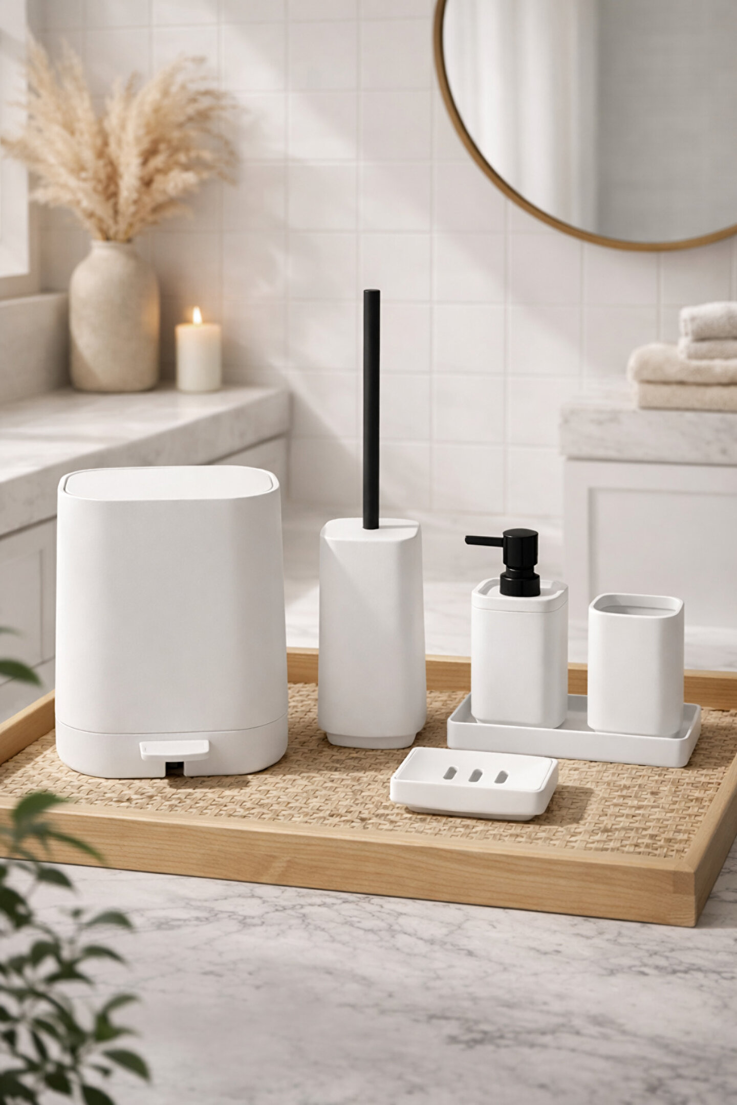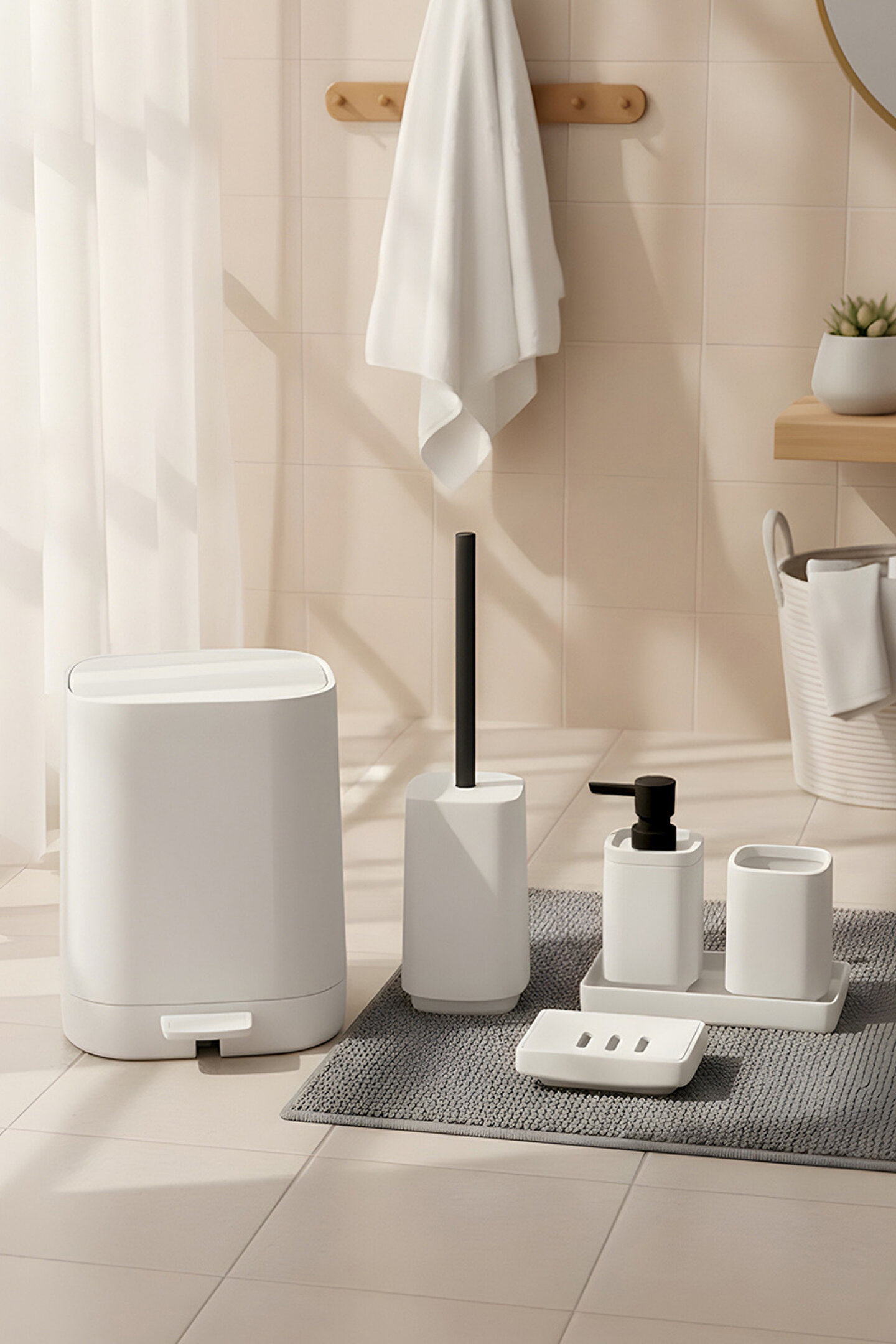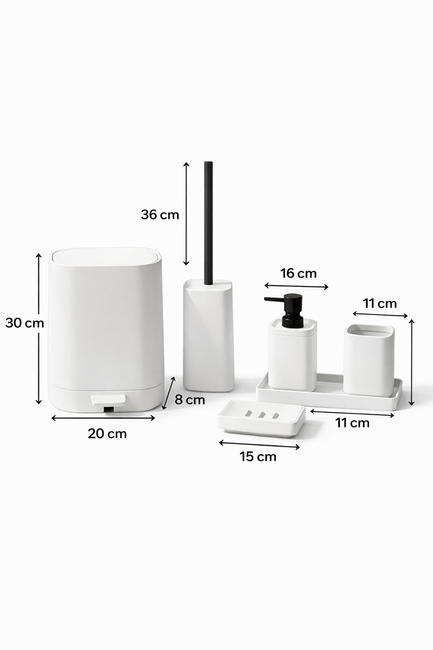 Banyonuzda hem şık bir görünüm hem de düzenli bir kullanım sağlamak için tasarlanan kare 5 parça banyo seti, uyumlu renk seçenekleriyle dekorunuza kolayca uyum sağlar. Mat yüzeyi sayesinde parmak izi ve leke görünümünü minimuma indirir, temizliği pratiktir.