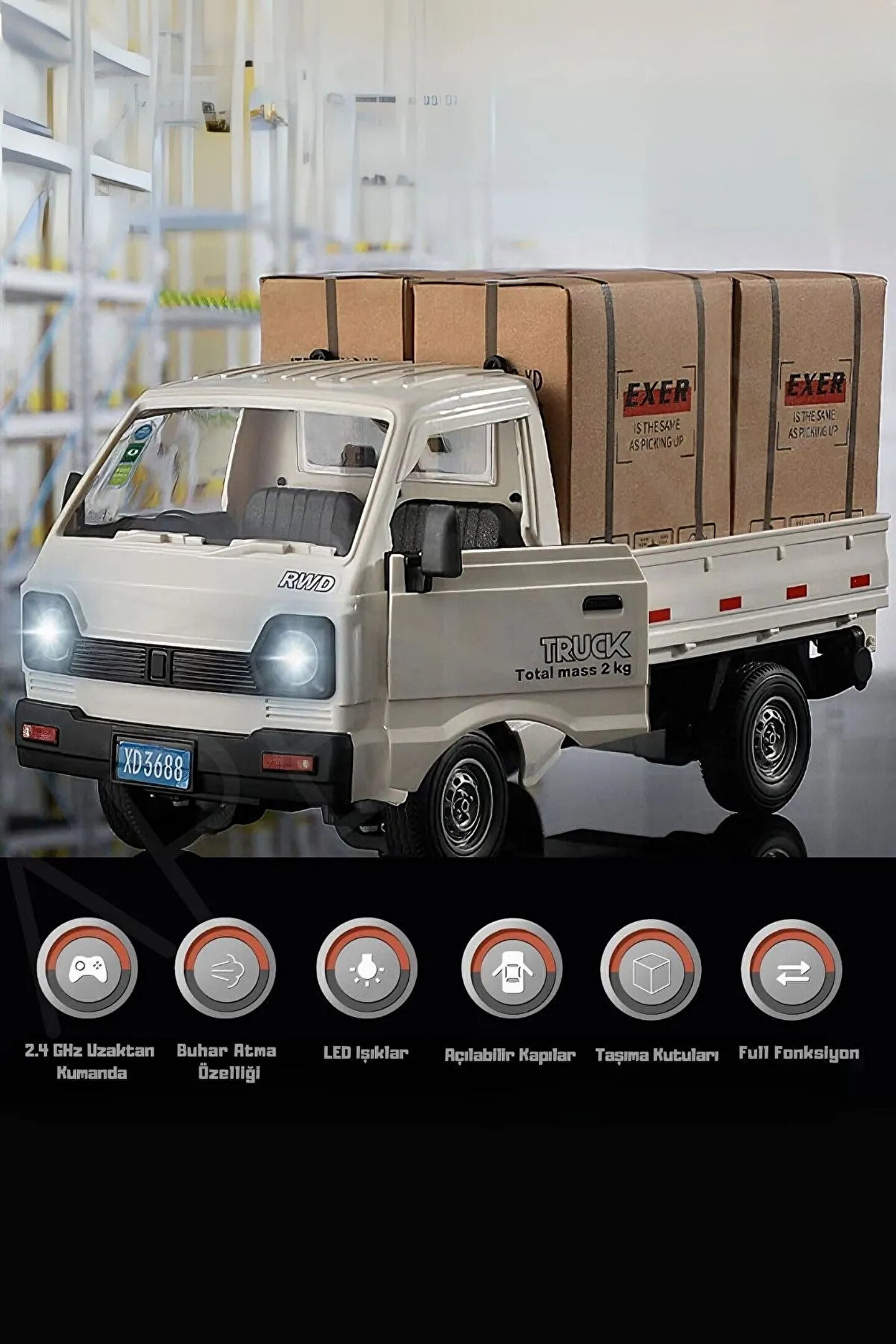 Çocukların hayal gücünü harekete geçiren bu 2.4GHz Uzaktan Kumandalı RC Kamyonet, sesli ve ışıklı efektleri, buhar püskürtme özelliği ve açılabilir kapılarıyla adeta gerçek bir kamyoneti aratmıyor! Şarjlı yapısı sayesinde uzun süreli oyun keyfi sunarken, güçlü uzaktan kumandası ile tam kontrol imkânı sağlar.