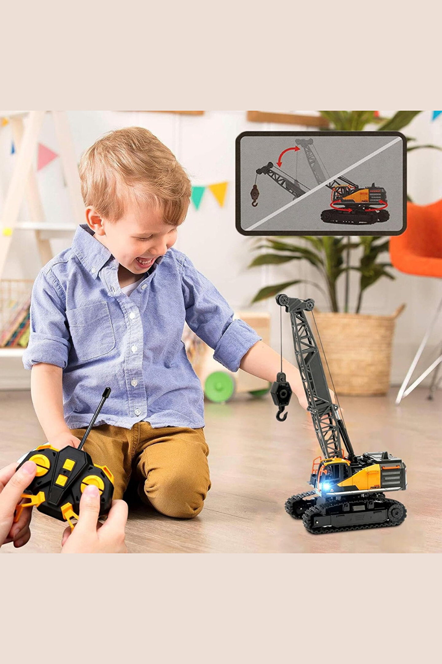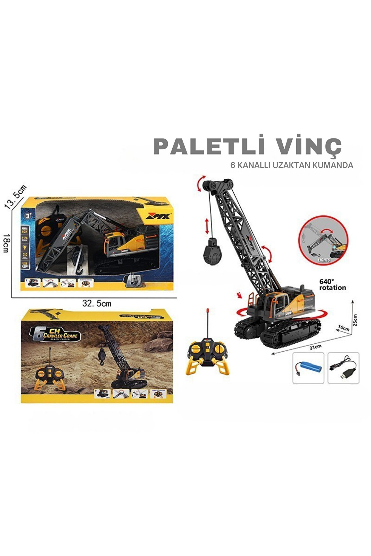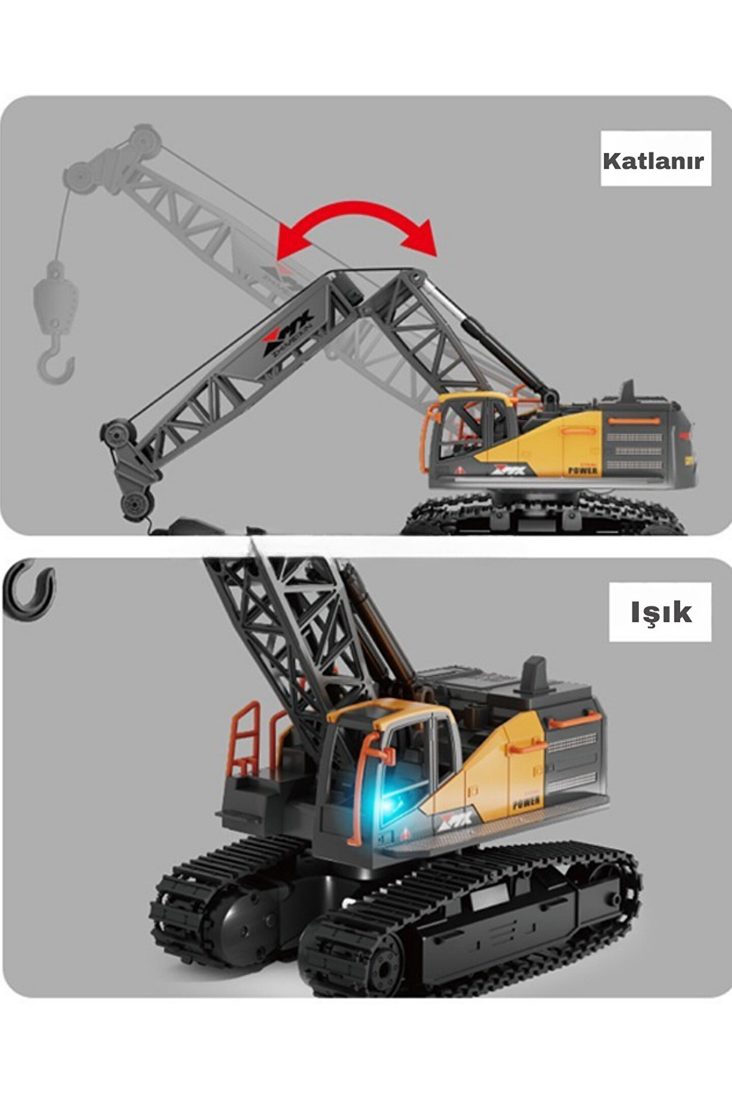welcomein Oyuncak 40 Mhz Uzaktan Kumandalı Işıklı İş Makinası RC Ekskavatör Vinç Paletli