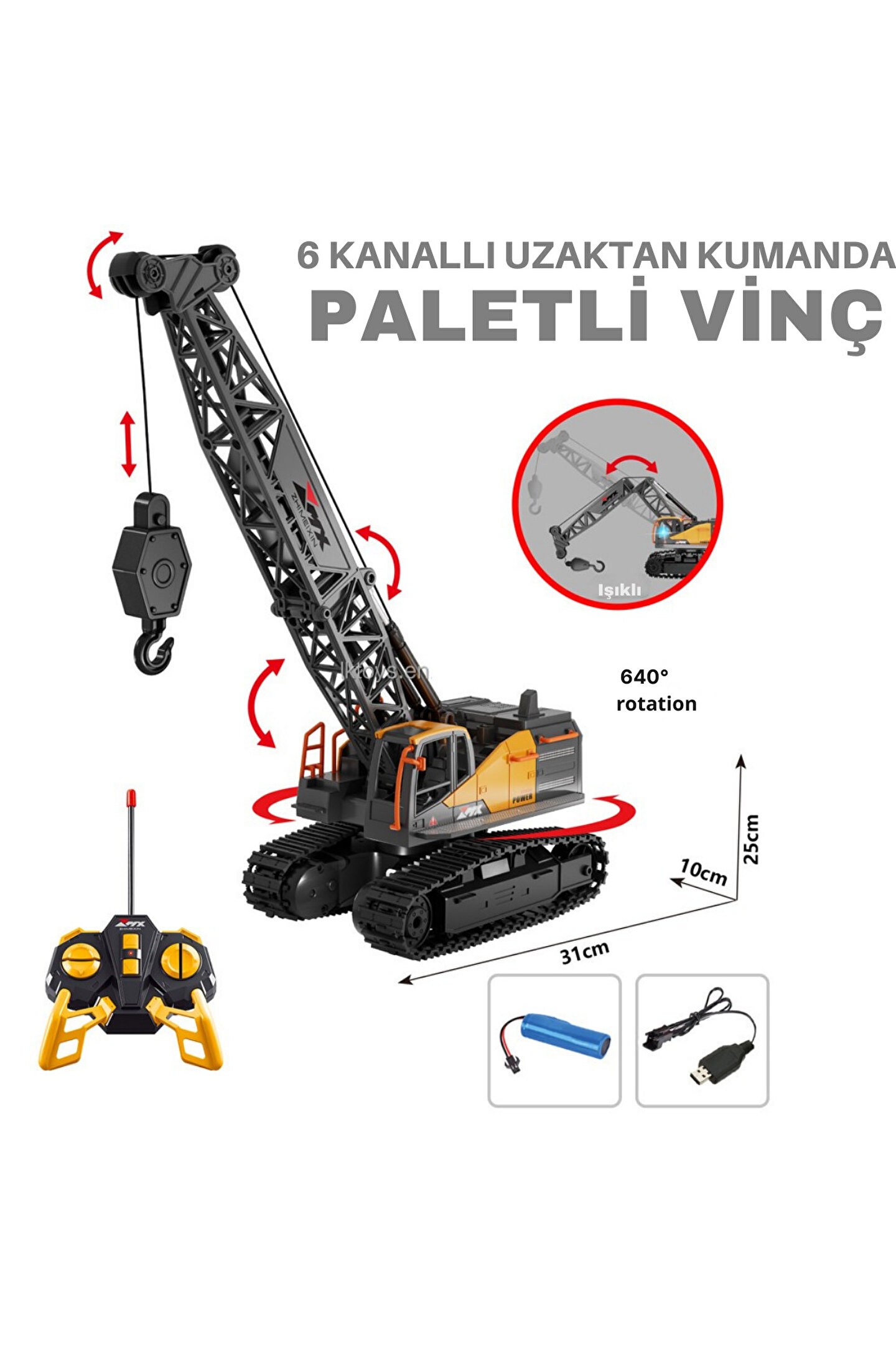 - 40 Mhz frekansında çalışan uzaktan kumanda ile kontrol edilebilen oyuncak, çocukların motor becerilerini geliştirmelerine yardımcı olur.; - Şarj edilebilir özelliği sayesinde kesintisiz oyun deneyimi sunar; böylece çocuklar enerji kaygıları olmadan eğlenebilirler.; - Tamir edilemeyen yapısıyla dayanıklılığı ön planda tutulmuş olup, uzun süreli kullanım için idealdir.; - Paket içeriğinde yer alan ekstra parçalarla birlikte gelen bu oyuncak, kolayca monte edilebilir ve eğlenceye hazır hale getirilebilir.; - Pil gerektiren tasarımına rağmen, pil kutuya dahil değildir; böylece ebeveynlerin çocuklarının güvenliğini sağlama konusunda daha fazla esneklik sunar.; - 3 yaş ve üzeri çocuklar için uygun olan bu oyuncak, küçük yaştaki kullanıcıların motor becerilerinin gelişimine katkıda bulunurken aynı zamanda eğlenceli vakit geçirmelerini de sağlar.;